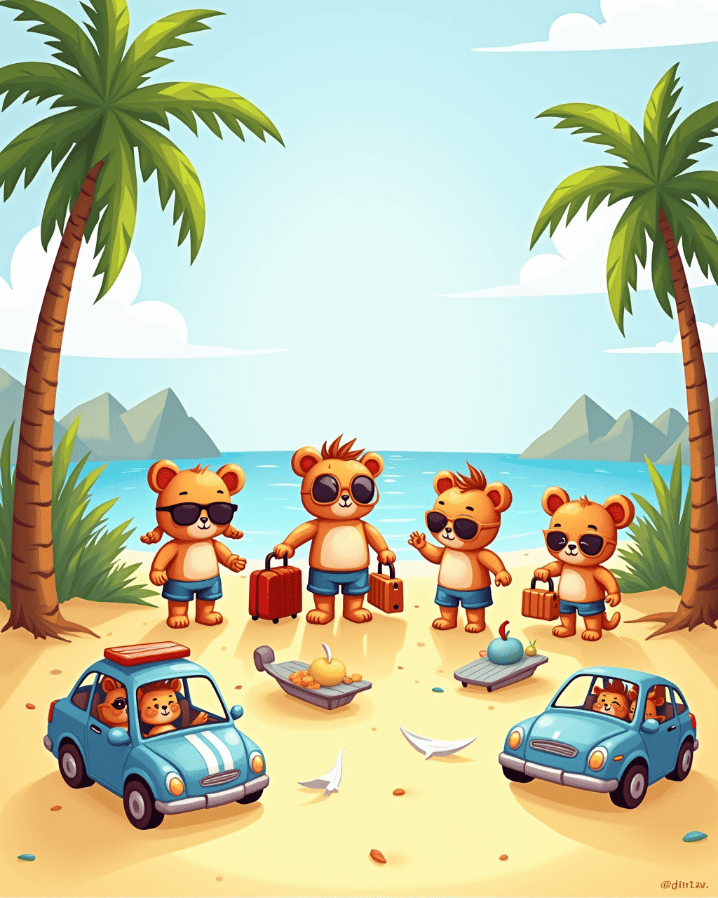 When I opened my bedroom door that morning, my toys were all lined up on the floor, wearing tiny sunglasses and carrying little suitcases. They whispered to each other, "Today's the day we get a break from being played with all the time." I giggled, thinking they were just pretending, but a gentle breeze knocked over my drawing box and revealed a tiny postcard: "Vacation, please!".