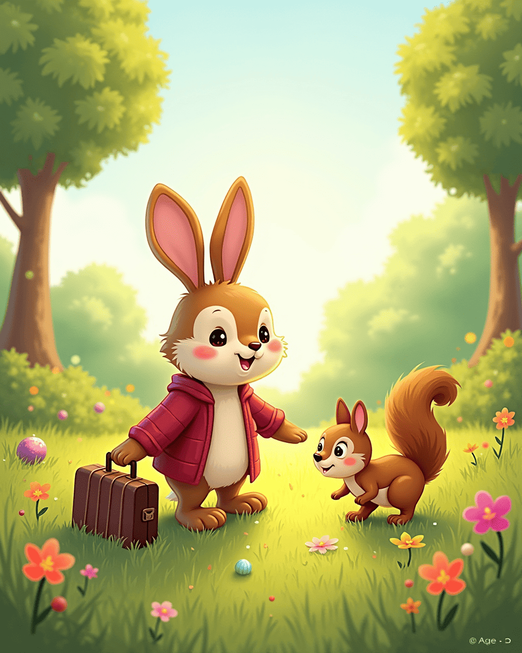 The stuffed rabbit, Mr. Fluff, stepped into the kitchen, a tiny suitcase by his side, and announced, "I'll be visiting the park, where the grass smells like adventure and the squirrels will be my tour guides." I could hear the soft thump of his paws as he walked, and his friends followed: the action figure explorer, the plastic dinosaur, and the shiny marble.