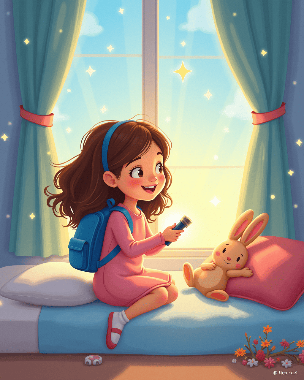Lily woke up early with a big smile, dreaming of the adventures that awaited her. The sun painted yellow lines across her window, hinting at the day’s excitement. She put on her favorite blue backpack, filled it with a flashlight and her stuffed bunny, and promised herself she would try sleeping on her own for the first time. While she packed, her mom explained that sleeping alone could make her feel brave and strong. Lily nodded, feeling determined and ready for the night ahead.