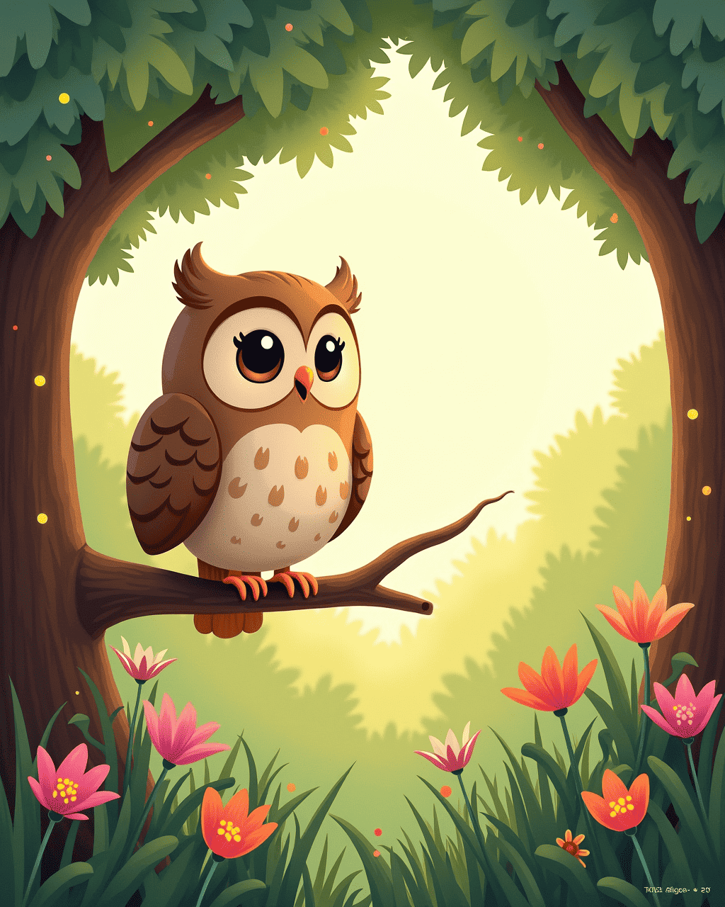 A gentle owl perched on a tree branch beside Lily’s bedroom window. Its wide eyes blinked like slow, steady breathing. “Don’t worry, I’m here,” croaked the owl softly. Lily felt the owl’s comforting presence and her breathing grew even calm. She imagined the owl’s wings as a protective blanket around her room.