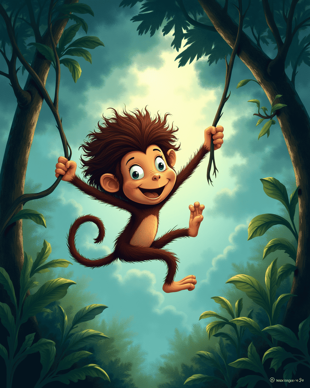 A bright-eyed monkey swung from a sturdy vine and introduced himself as Milo. Milo laughed and offered to give me a tour of his jungle domain. He showed me how the roots of each hair strand interconnected like an underground river. Milo explained the jungle’s rhythm: the wind’s lull, the rain’s song, and the day’s vibrant dance. I felt thrilled to learn from my new jungle friend.