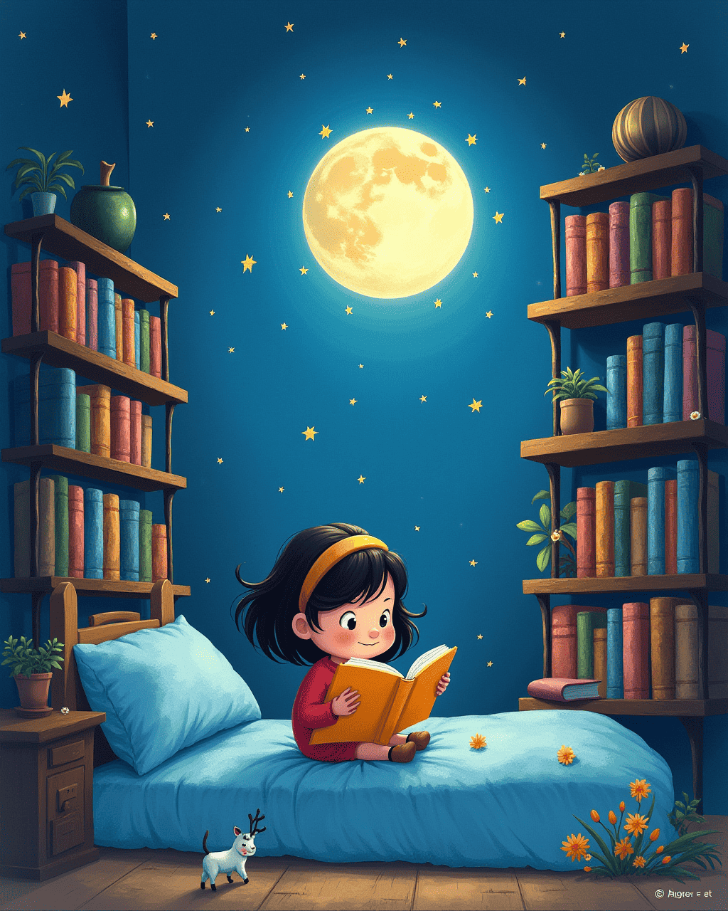 In the next room, shelves held books that breathed real stories. Each book opened to a page that fluttered like a butterfly. Lily read about a moon that sang lullabies to stars. The stars clapped, causing a gentle thunder of applause. Lily felt like she was listening to an orchestra of imagination.
