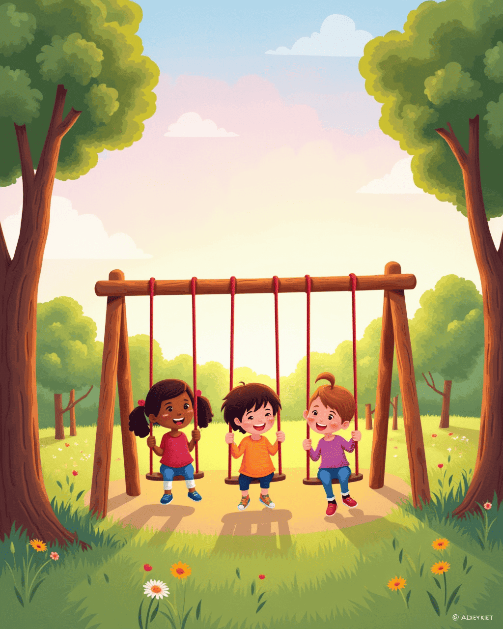 The first light of dawn painted the sky pink. Children gathered around the swing set, eager for playtime. Suddenly, the swings whispered to one another, as if they had a secret. They shivered, swinging higher than usual, like a breeze in the park. The kids laughed when the swing’s seat hovered inches from the ground, as if it were a floating cloud. Everyone knew something extraordinary was about to happen.