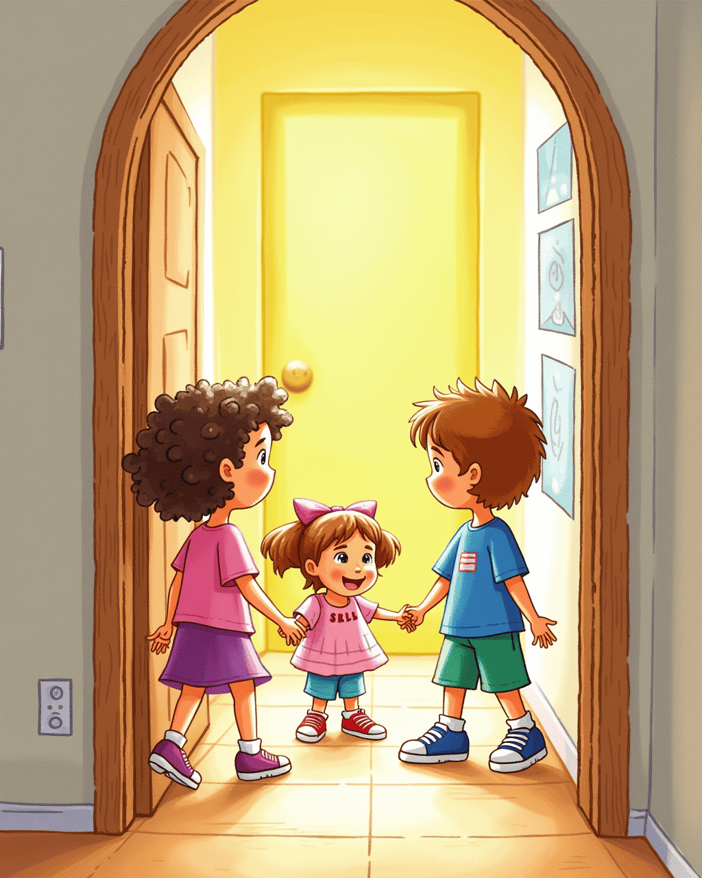 When the children ran into the hallway, the floorboards decided to hum a lullaby. The family toy car rolled uphill by itself, squealing as it climbed the little staircase. Mr. Johnson tried to open the front door, but the door slipped open and closed the same instant, playing a joke. Mrs. Johnson’s perfume turned into a rainbow aroma that drifted from corner to corner. The house seemed to enjoy a dance, and every step made them giggle.