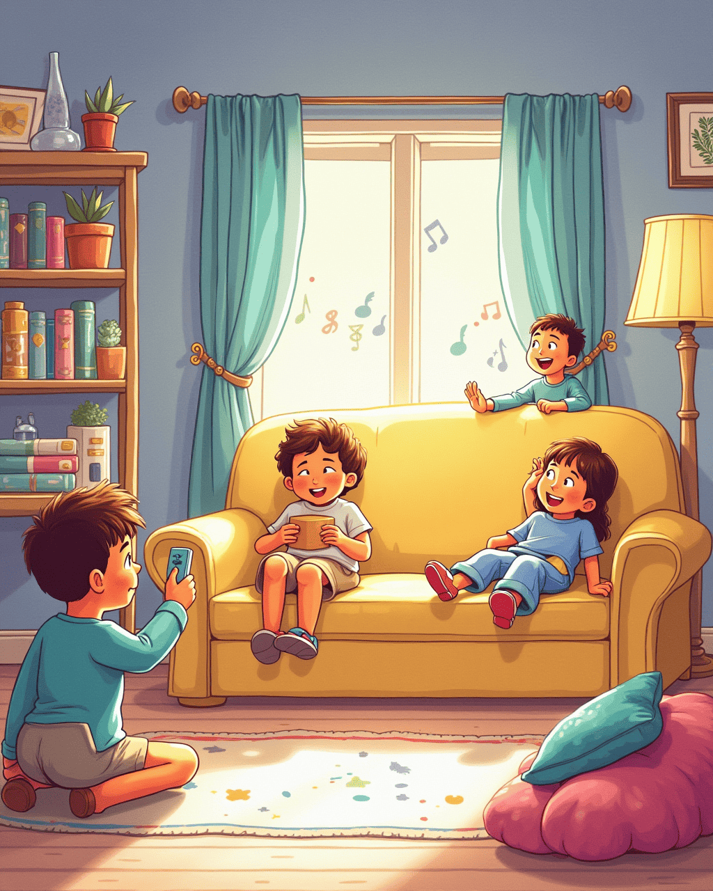 The living room turned into a game zone, with a couch that moved to the rhythm of music. A remote-control turned into a baton, guiding an invisible orchestra of lights. The family started a game of hide and seek, but the couch kept hiding behind the sofa. They had to follow the light patterns to find the hidden snack. After the game, everyone collapsed on a soft bed of cushions, delighted by the day’s adventures.