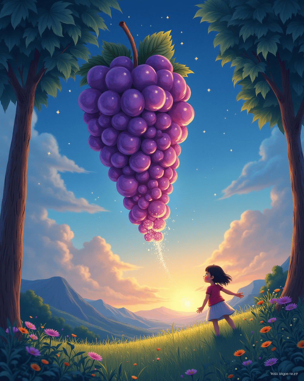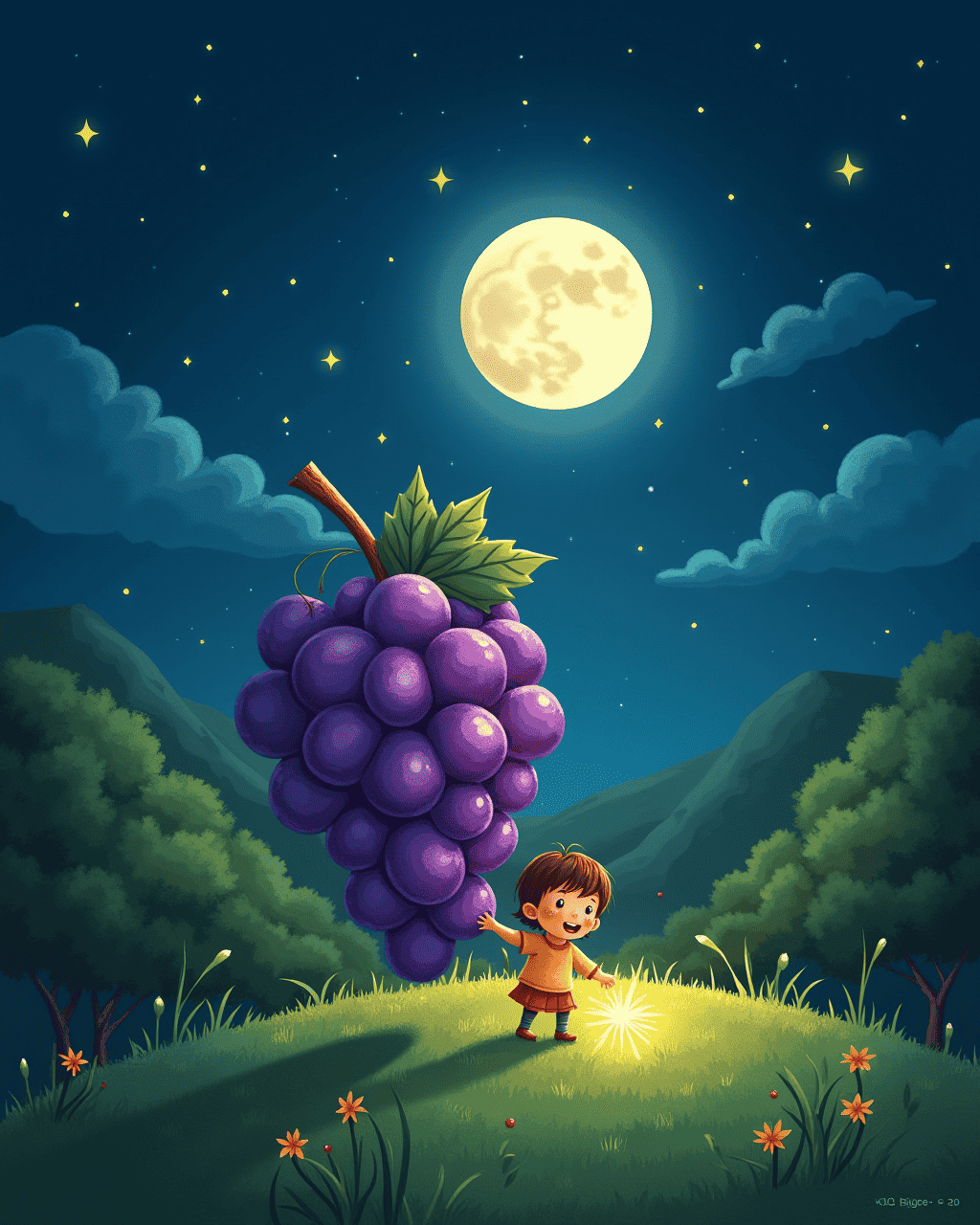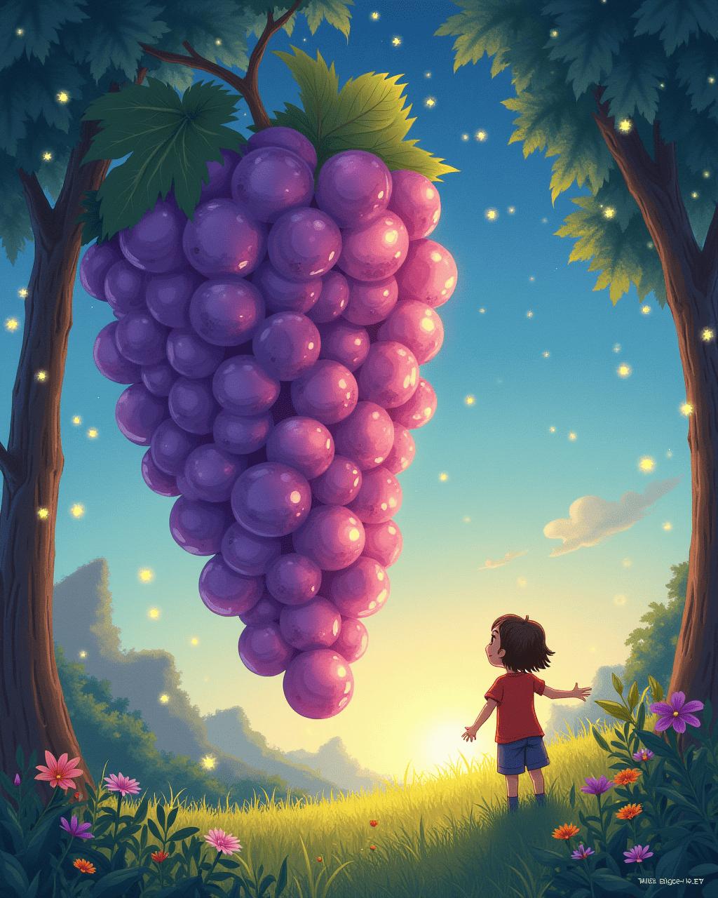 Years later, the valley’s children still speak of the day the grape showed the world its light. The story reminds us that even the smallest seed can become a source of endless joy. Lily grew up smiling, her heart always open to sparkling surprises. Every evening, the valley glows softly, a tribute to the legendary grape that taught us to dream.