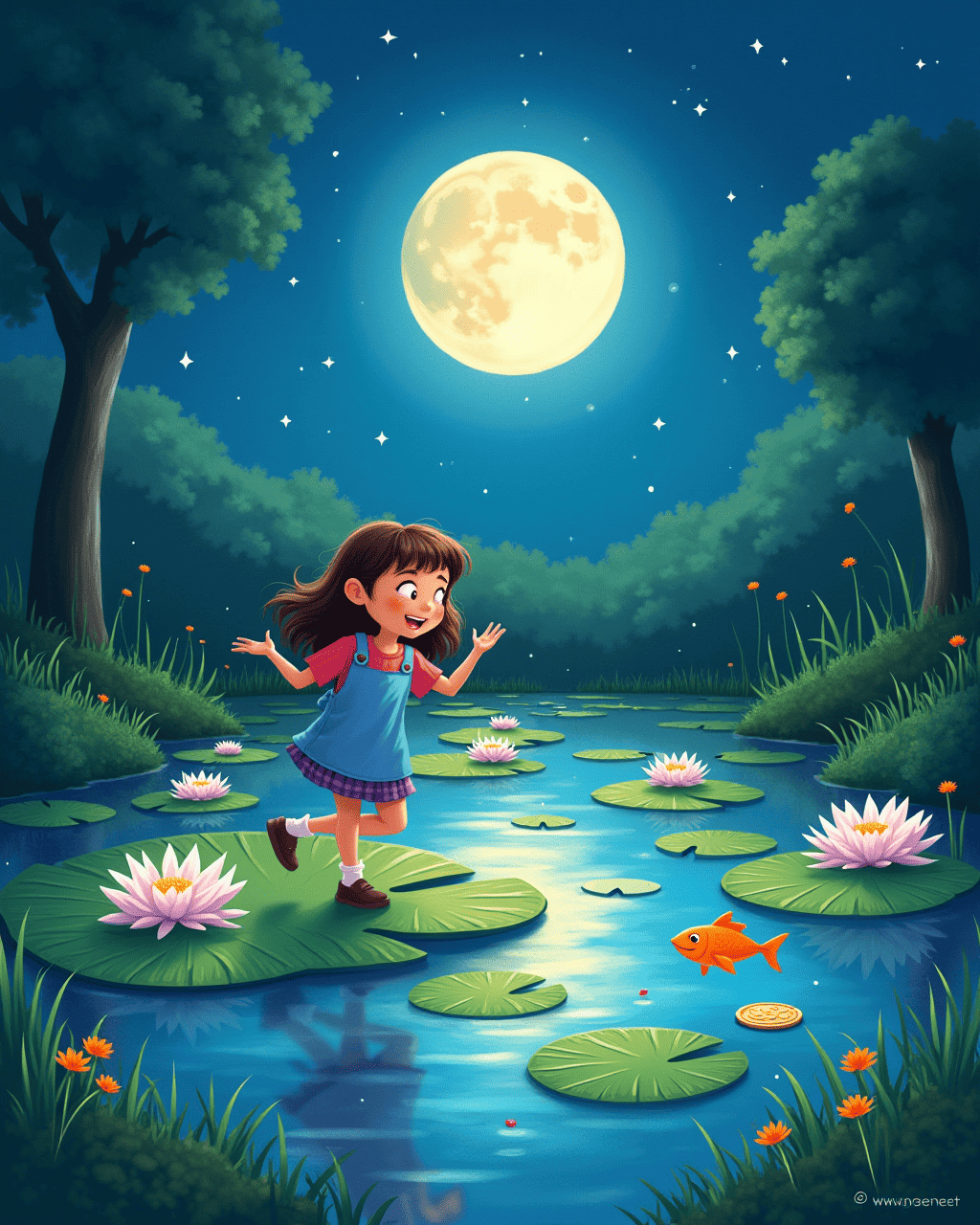 Reaching a sparkling pond, Lily saw lily pads arranged in a curious pattern.