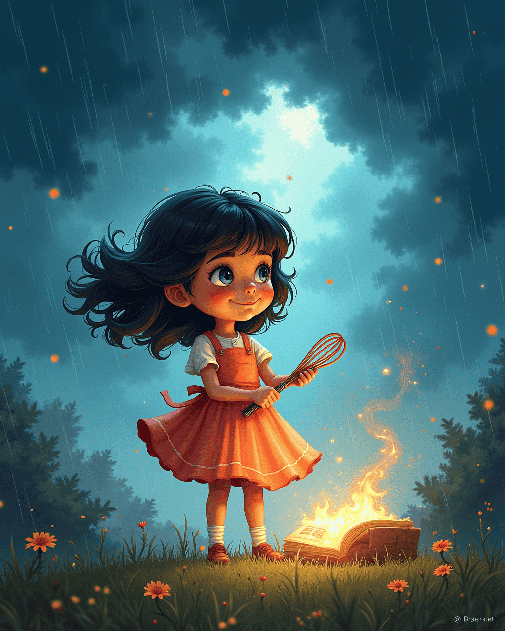 Mia always loved baking, but she kept her recipes in a notebook she called “Secret Recipes.” One rainy afternoon, her grandmother gave her an old cookbook that smelled like cinnamon and old parchment. The cover was blank, but a strange symbol shimmered—an arrow wrapped around a whisk. Curiosity bubbled in Mia’s heart. She decided to try the first recipe, hoping it would be delicious.