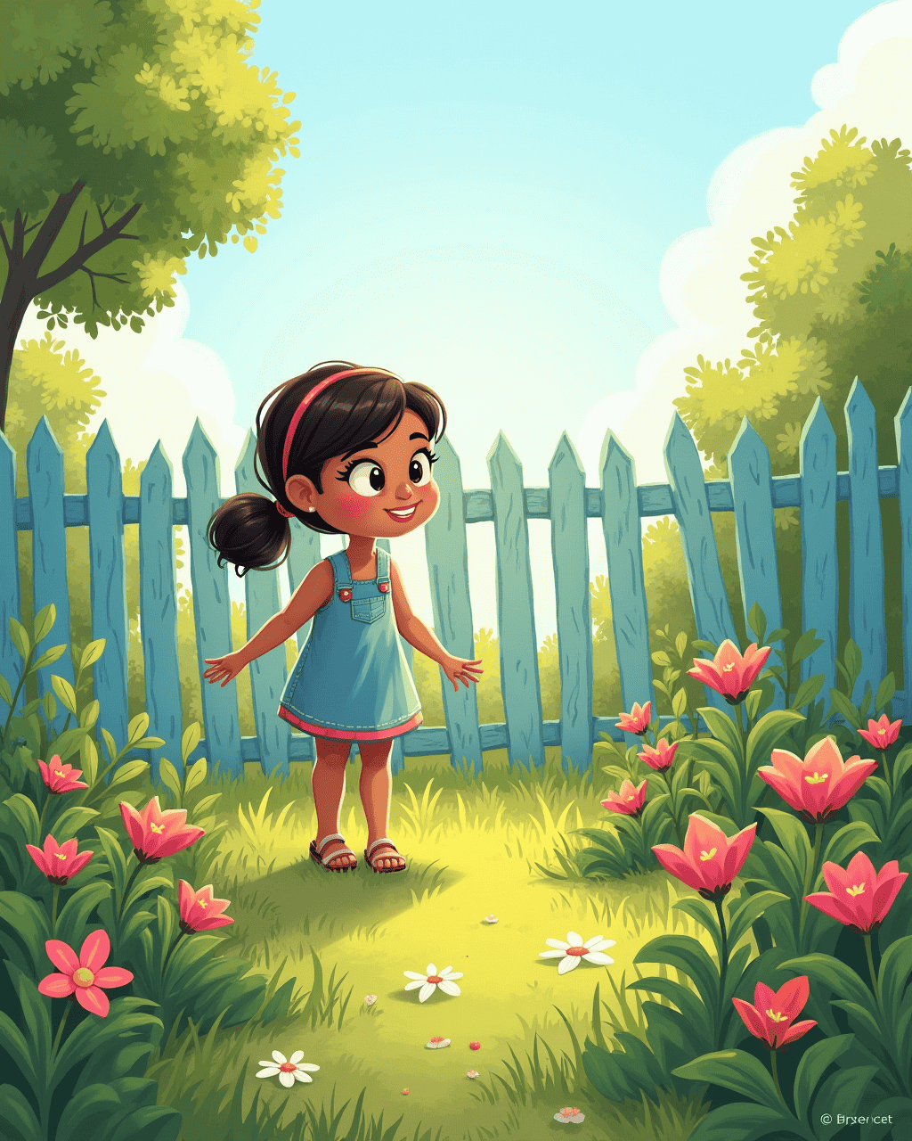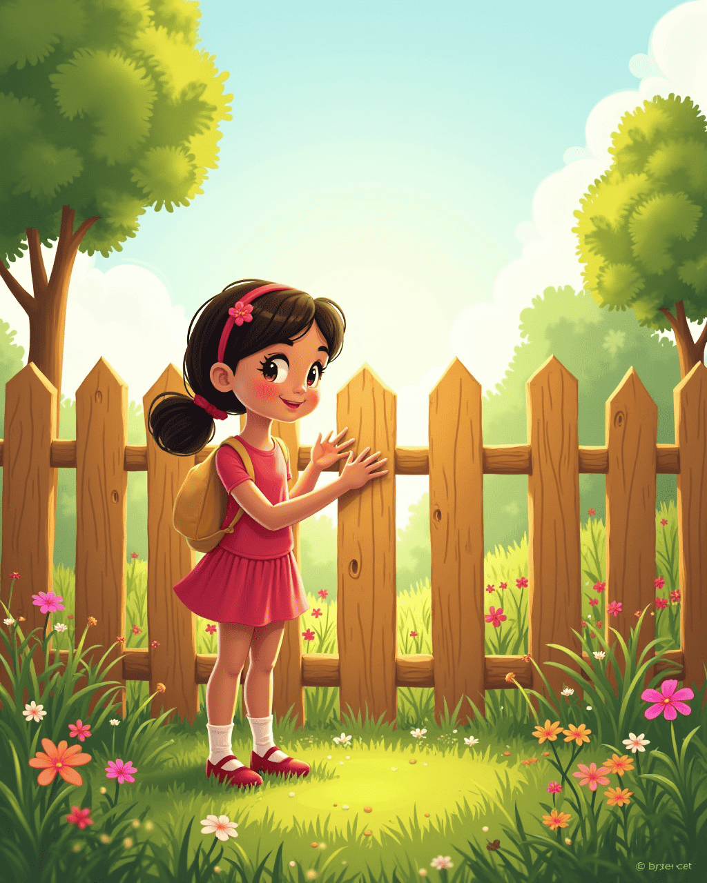 In the small village of Willowbrook, lived a bright-eyed girl named Lily. She loved exploring the fields behind her home, dreaming of adventure. One day, while chasing butterflies, Lily noticed the garden fences were weak and uneven. She whispered to herself, "I can make them stronger and brighter!" Determined, she imagined a world where boundaries kept friendships safe and private. Lily decided to build her own fence to protect her secret garden.