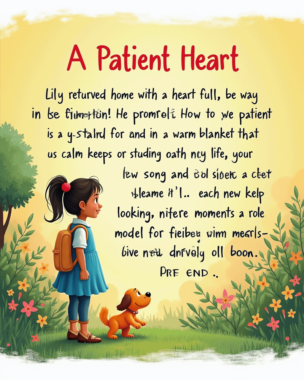 A heartwarming tale about a curious girl named Lily who discovers the beauty of patience through a series of adventures.
