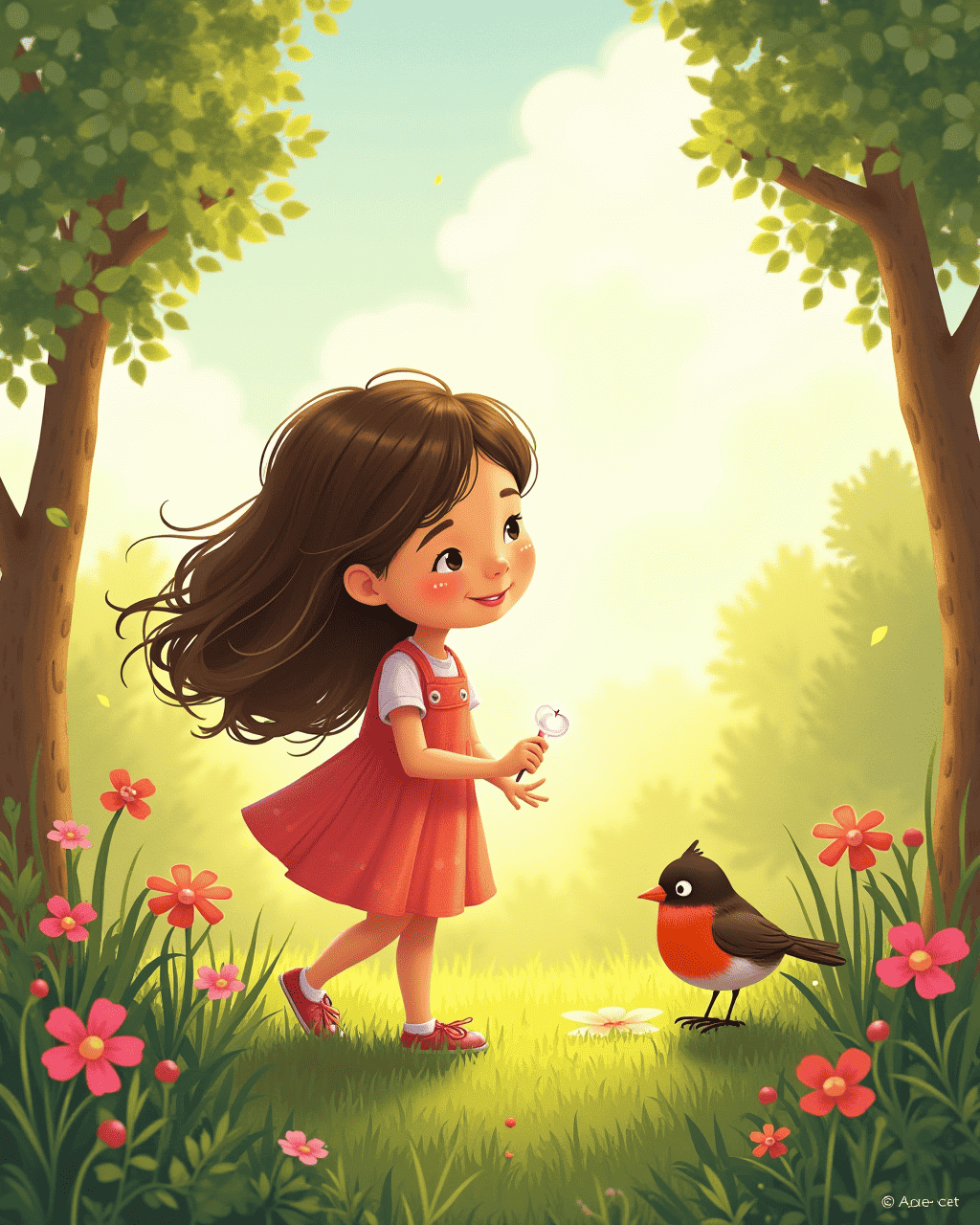 Lily stared at the clock on her wall and felt that time always rushed. One sunny afternoon, she whispered a secret wish into the wind. The wind twirled around her fingers and carried her dream to the garden. Her best friend, a curious robin, perched on her shoulder and chirped in agreement. Lily laughed, feeling the first tick of hope echo in her heart.