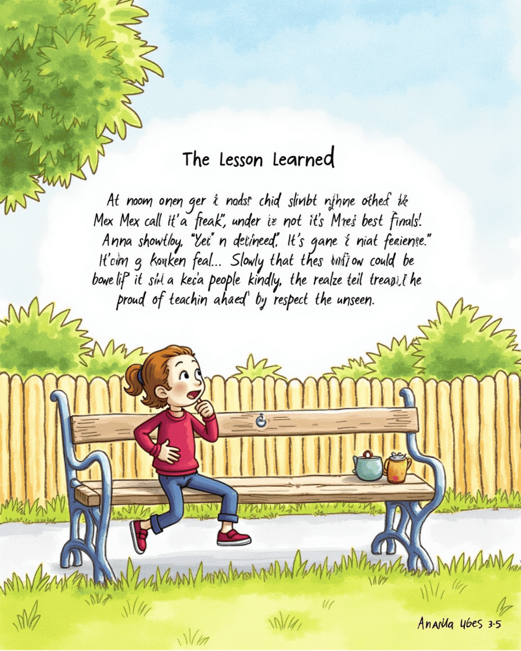 At noon, the shadow slipped under a bench and the nearby kids saw it. A boy named Max called it a "freak," and the shadow shivered in fear. Anna shouted, "It’s not a monster! It’s my best friend." Slowly the kids gathered, and the shadow bowed, its tail gently swaying. They realized that a shadow could be friendly if the people treated it kindly. Anna felt proud of teaching her peers to respect the unseen.