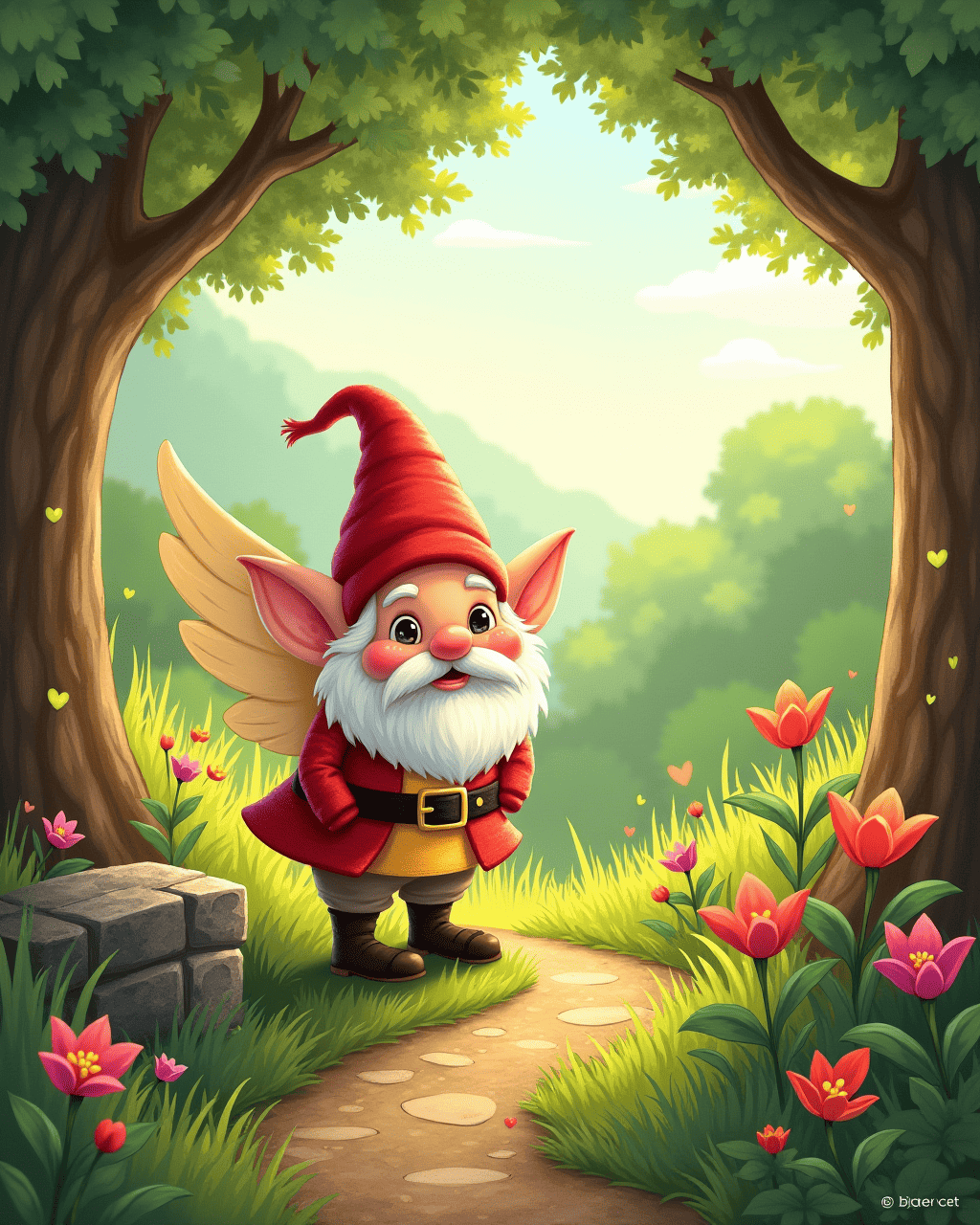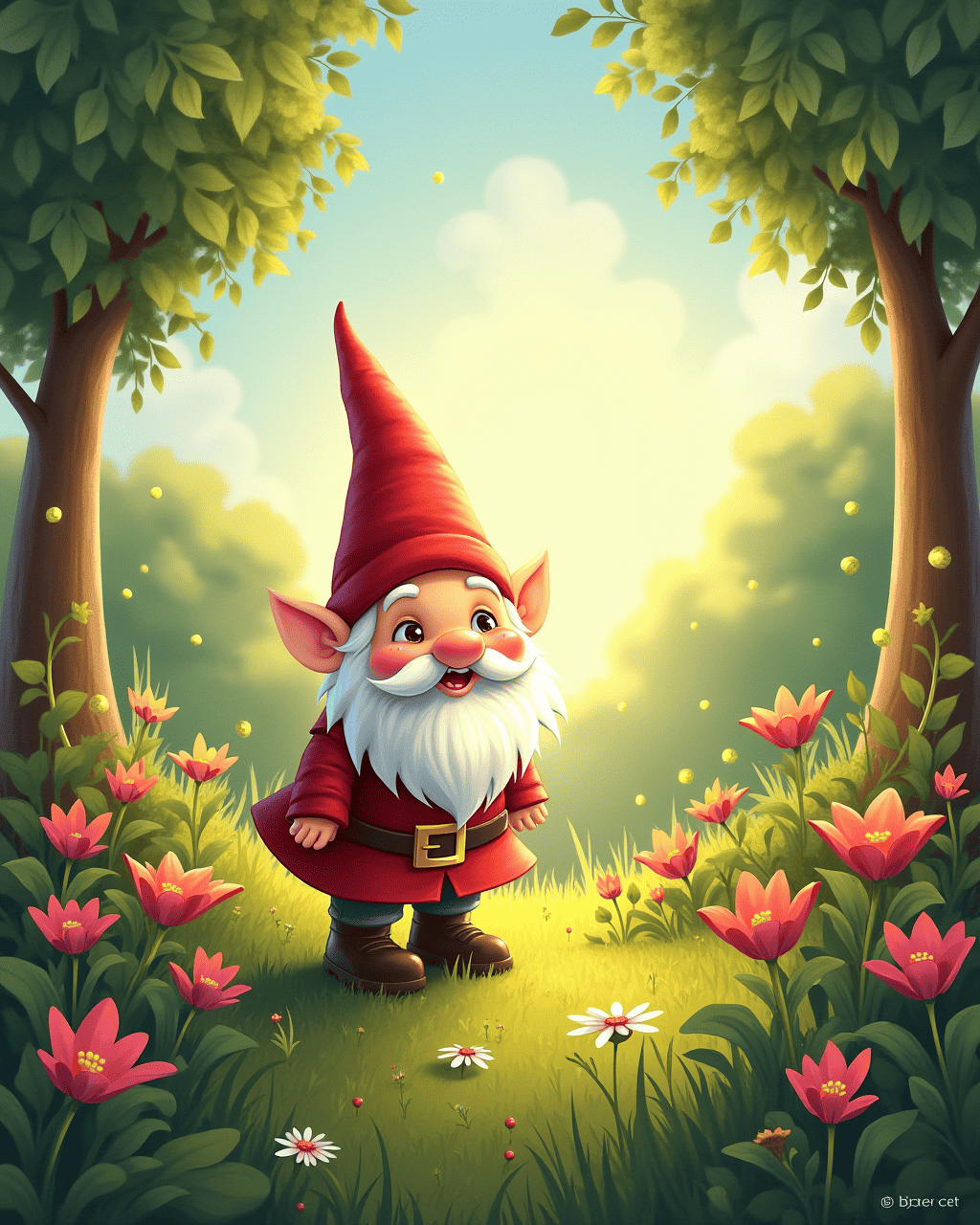 In the heart of a quiet orchard, a glimmering garden gnome named Gilly lived beneath a spiral of willow branches. Each morning, Gilly watered the dew-kissed petals with silvered droplets that shone like tiny stars. Children from the village would whisper when they saw him humming the wind’s lullaby. Gilly’s smile was brighter than the sunrise, and his hat was made of polished moonbeads. Even the shy fox would pause, enchanted by the gentle sparkle drifting from Gilly’s tiny lantern.