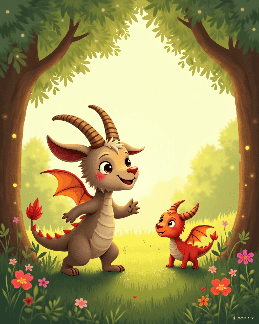 As the dragon spoke, Milo realized that bravery wasn’t just about roaring or flight. It was about believing in yourself, caring for friends, and facing fears together. The dragon taught Milo to feel his heart’s fire inside, not in his breath. Milo saw that his hooves were just as powerful when he used them to help others. He promised the dragon that he would spread courage in his meadow, sharing stories of dragons and goats alike.