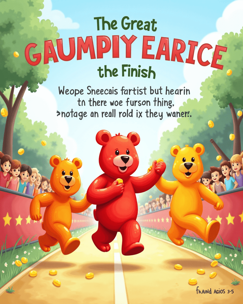 In the town of Sweetville, the gummy bears gathered one sunny morning. The mayor, Mr. Licorice, declared a grand race across the entire candy kingdom. The bears were excited and started planning the route. Each bear wanted to prove they were the fastest. The excitement grew, and the whole town buzzed with anticipation.