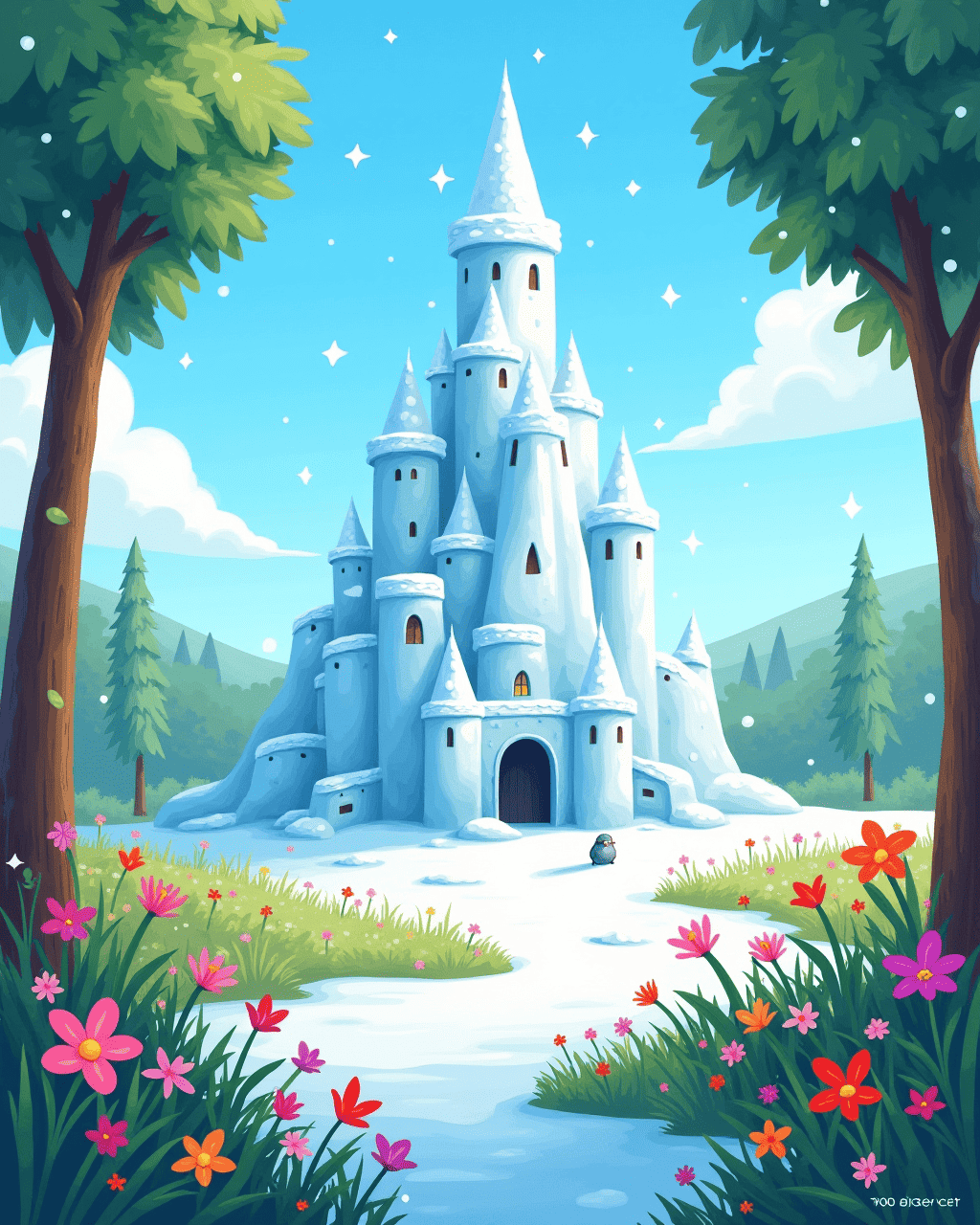 From the blanket, a tall castle began to rise, its walls glittering like diamonds.