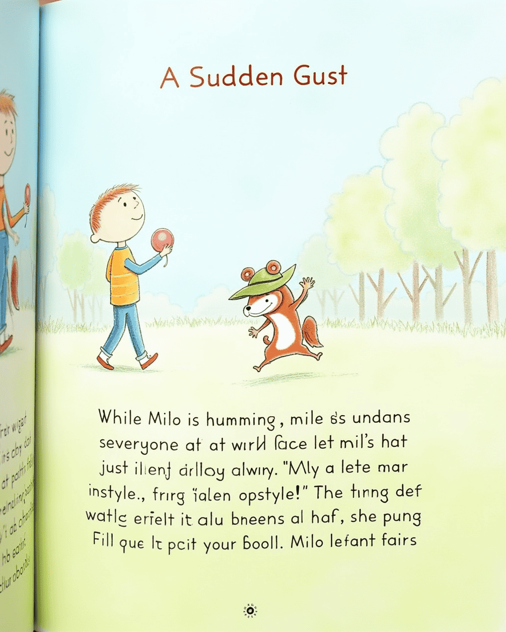 While Milo is humming, a sudden gust surprises everyone at the park. The gust lifts Milo’s hat just like a friendly wave. Milo giggles, "Hey, I liked your style!" The gust replies, "I bring fresh breezes to the playground." Milo learns that wind is playful and full of surprises.