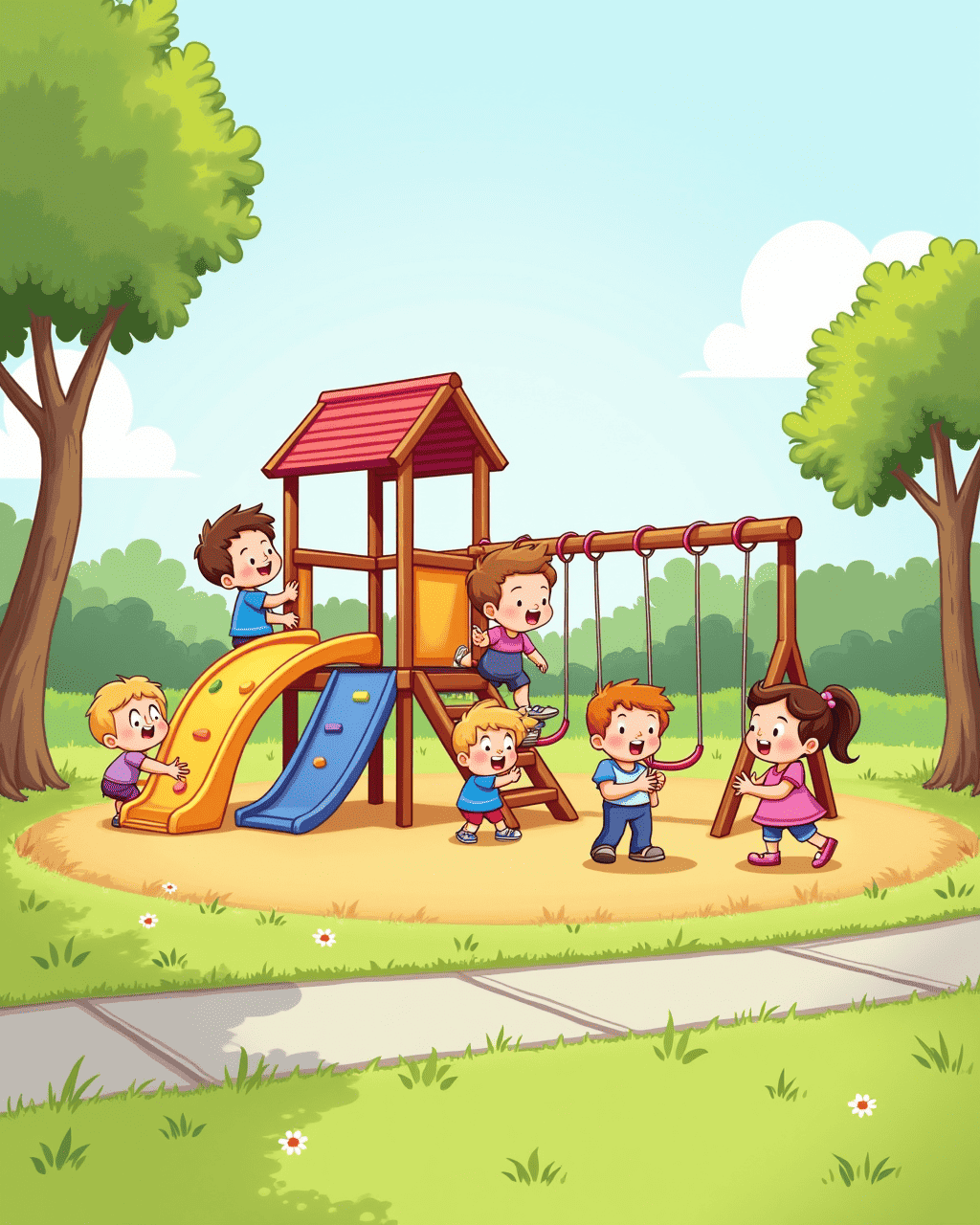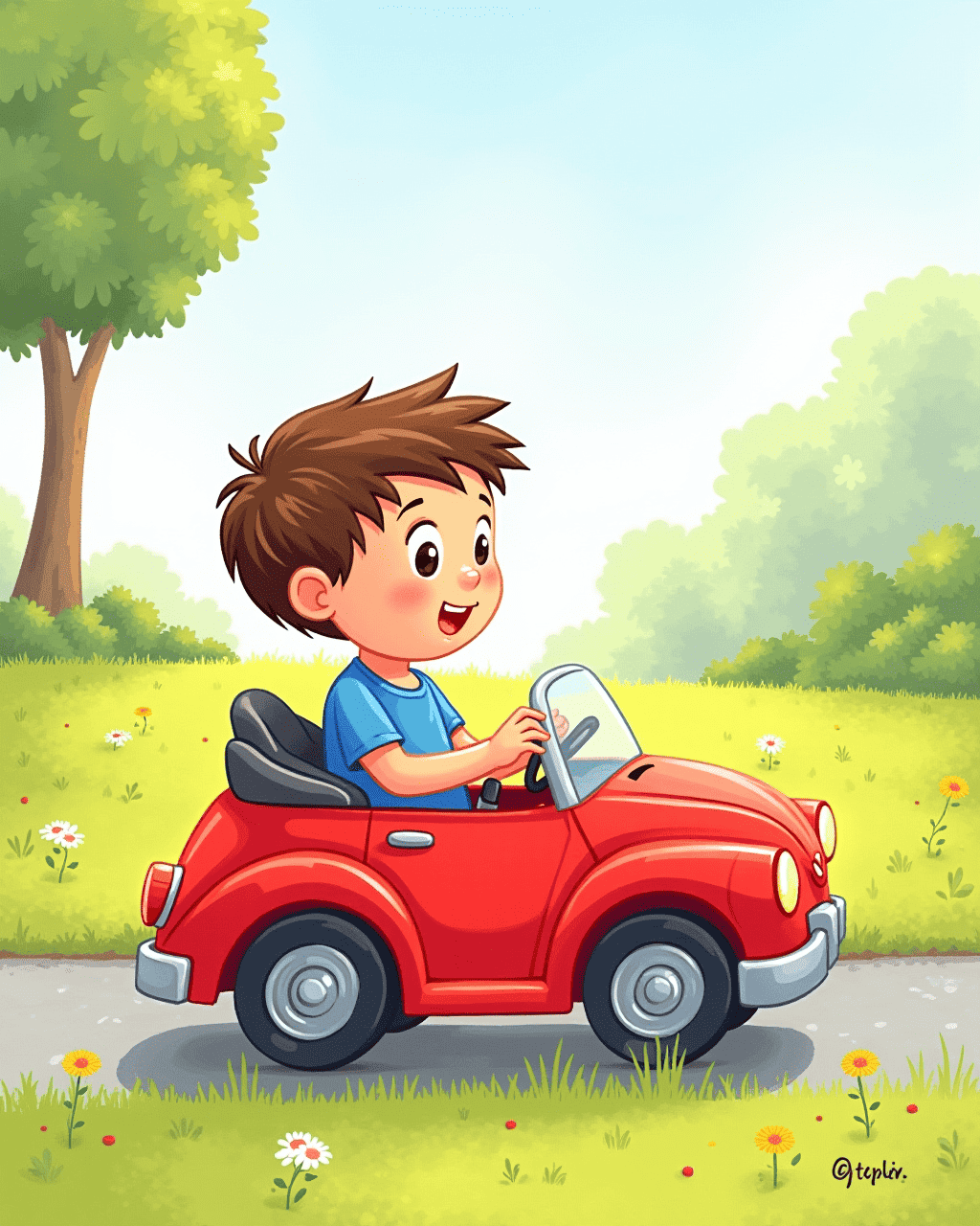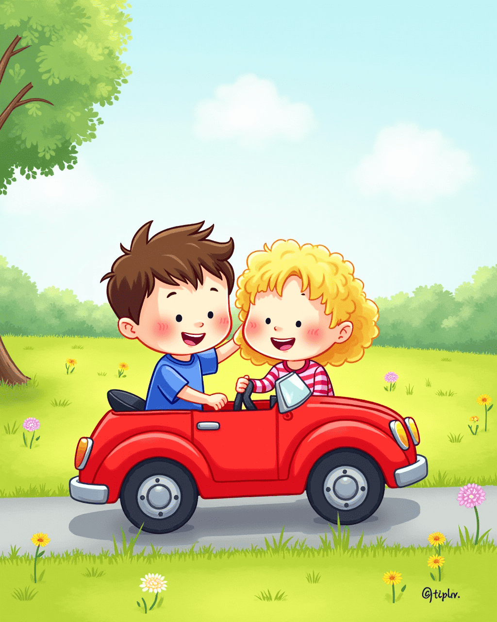 As summer ended, Milo and Lily made a pact: they would share everything they loved. Their friendship grew stronger each day. Milo’s red car was now a symbol of their togetherness. The kid who once feared sharing now knew it was a wonderful, safe thing to do.