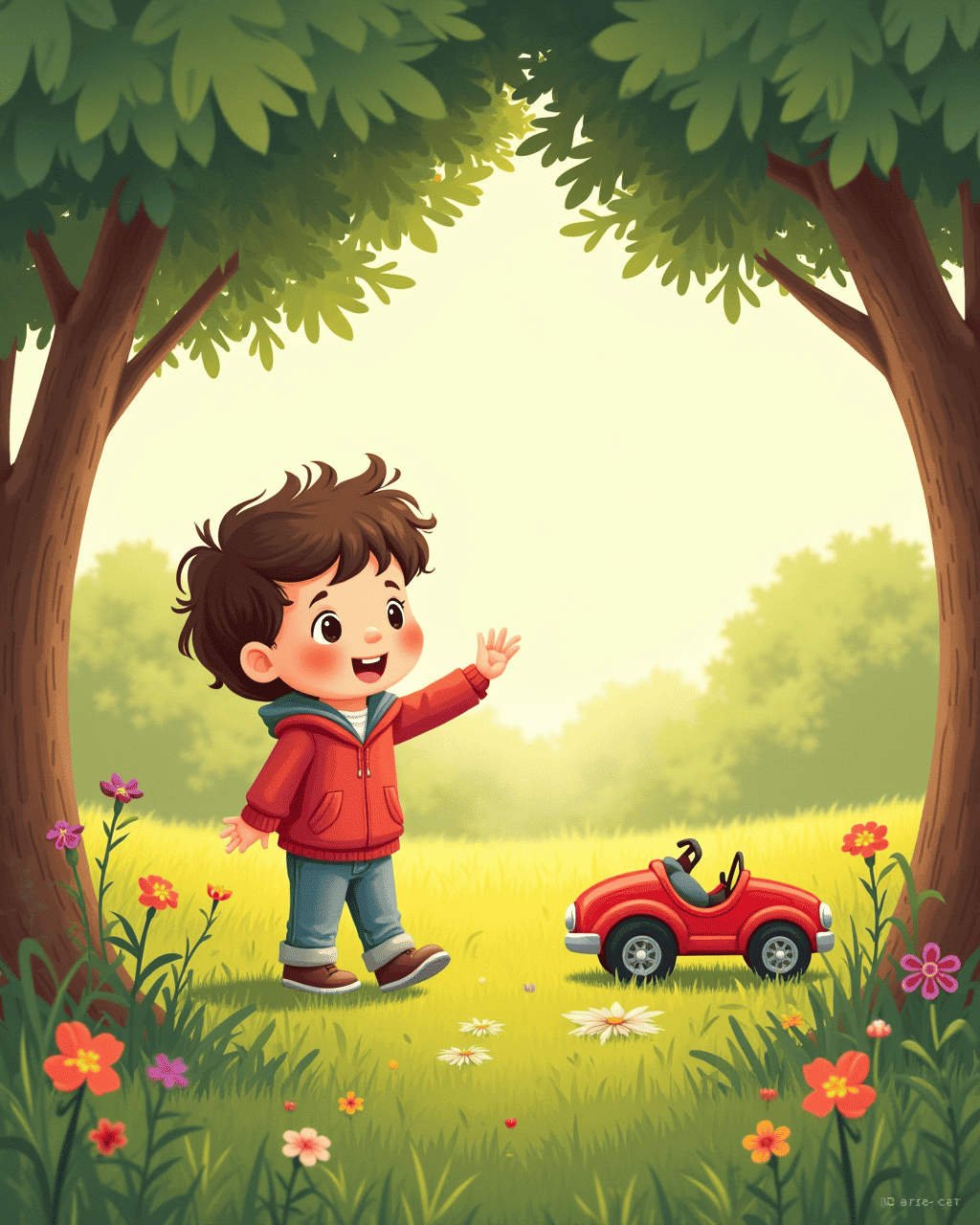 Milo loved his shiny red car. He kept it in a special corner of his room and never let anyone touch it. One sunny morning, his friend Lily asked to play with it. Milo felt a strange mix of excitement and worry. He wondered if sharing would make his car less special.