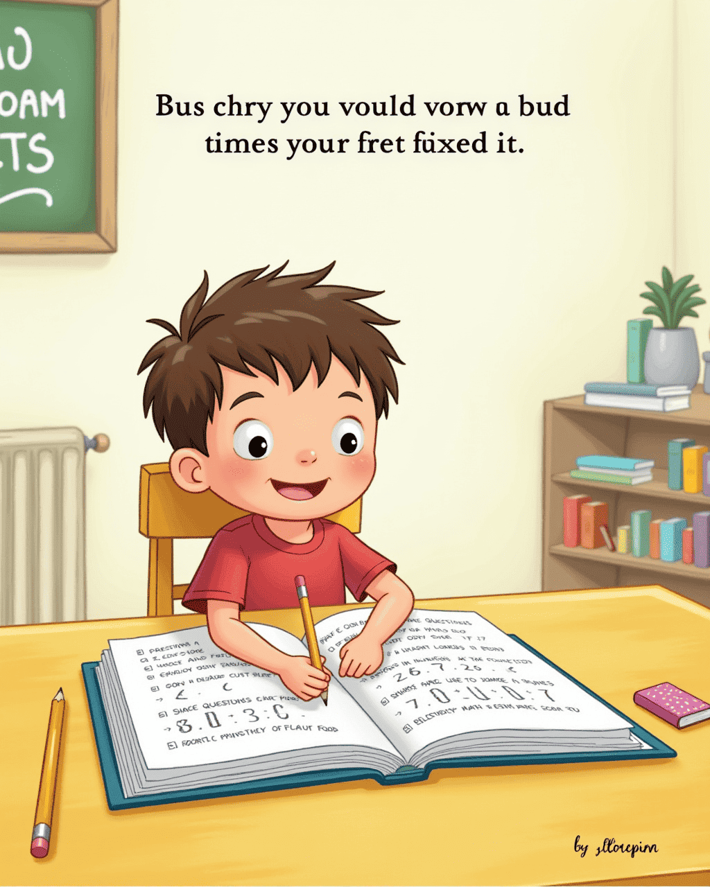 Milo set his pencil down and opened his textbook. His fingers danced over the pages, answering questions from his math book. He solved problems about numbers, shapes, and spaces, feeling a warm glow when each question was answered correctly. When he finished, he closed his eyes and smiled, happy that he had the confidence in his own decision.