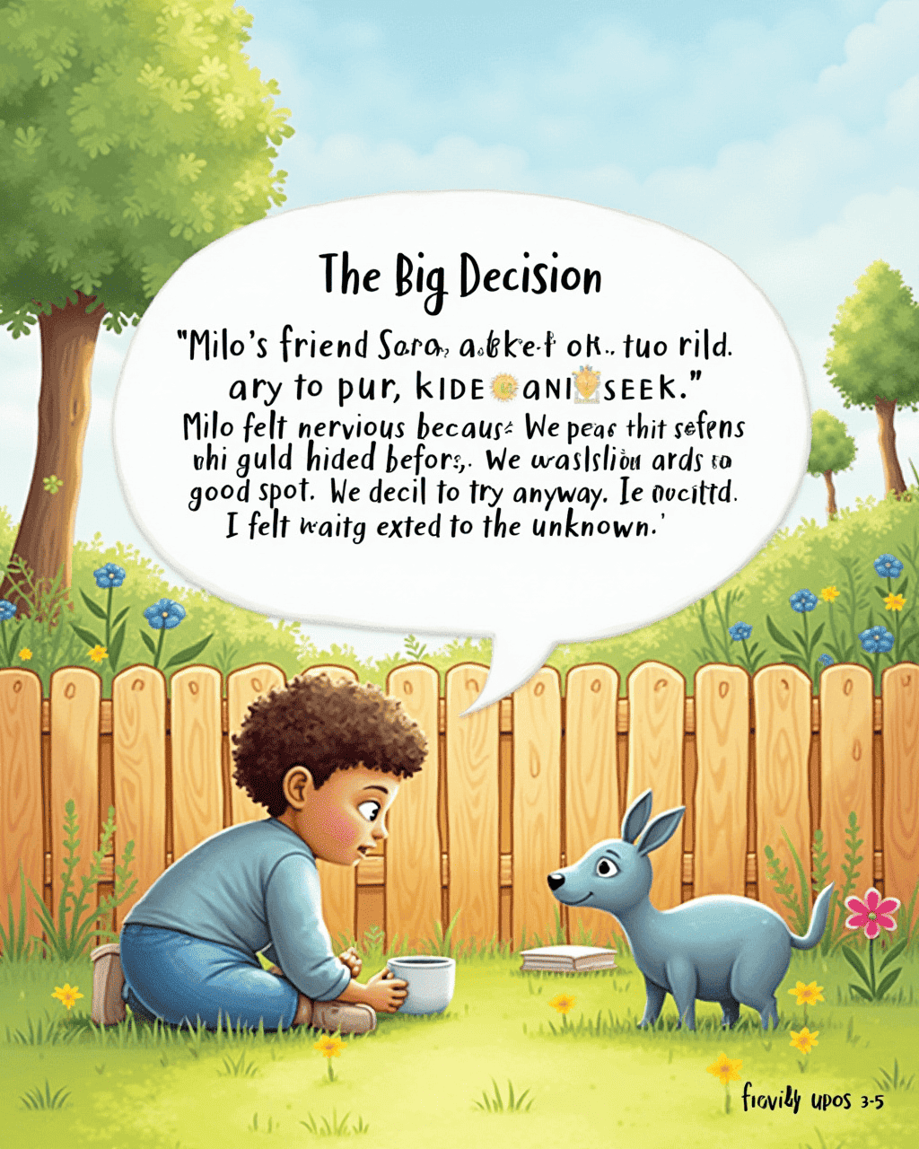 During hide‑and‑seek, Milo hid behind a tree. He whispered, “I’m not afraid.” Sara searched him but couldn’t find him. When Milo peered out, Sara laughed. The game became a fun mystery.