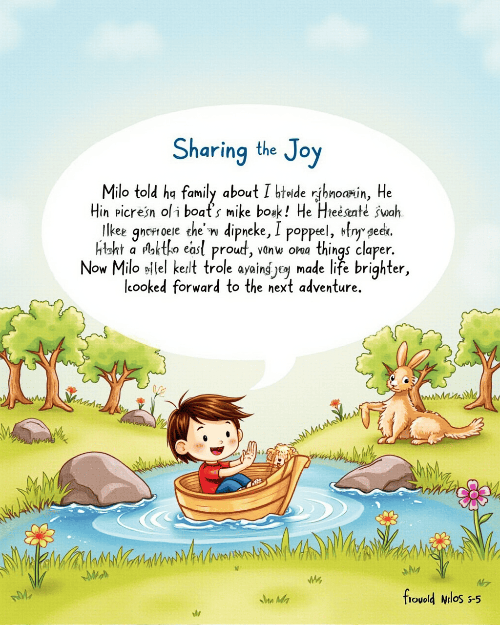 Milo told his family about his adventures. He drew pictures of the boat and described the hide‑and‑seek. His parents smiled. His sister clapped. Now Milo felt proud, knowing that trying new things made life brighter. He looked forward to the next adventure.
