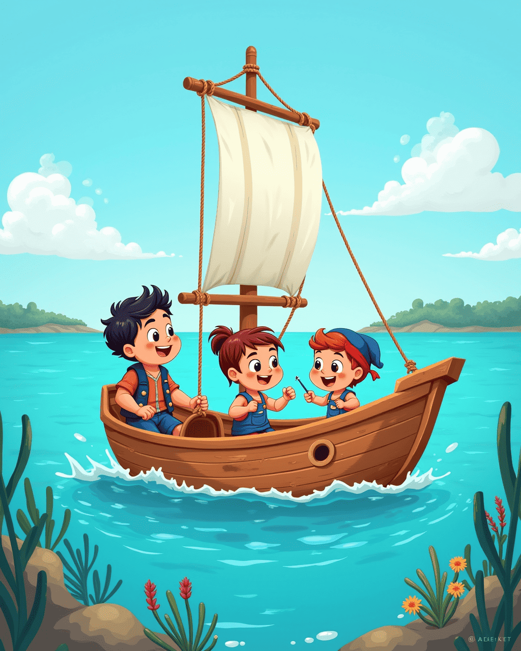 The kids packed supplies and a small boat steered out on the clear blue waters. The wind carried a salty scent that promised adventure. Captain Finn, a friendly diver, met them and offered a compass. They listened to the old legend about a sunken ship full of gold off the coast of the Caribbean Sea. Their hearts beat with curiosity as they set off.