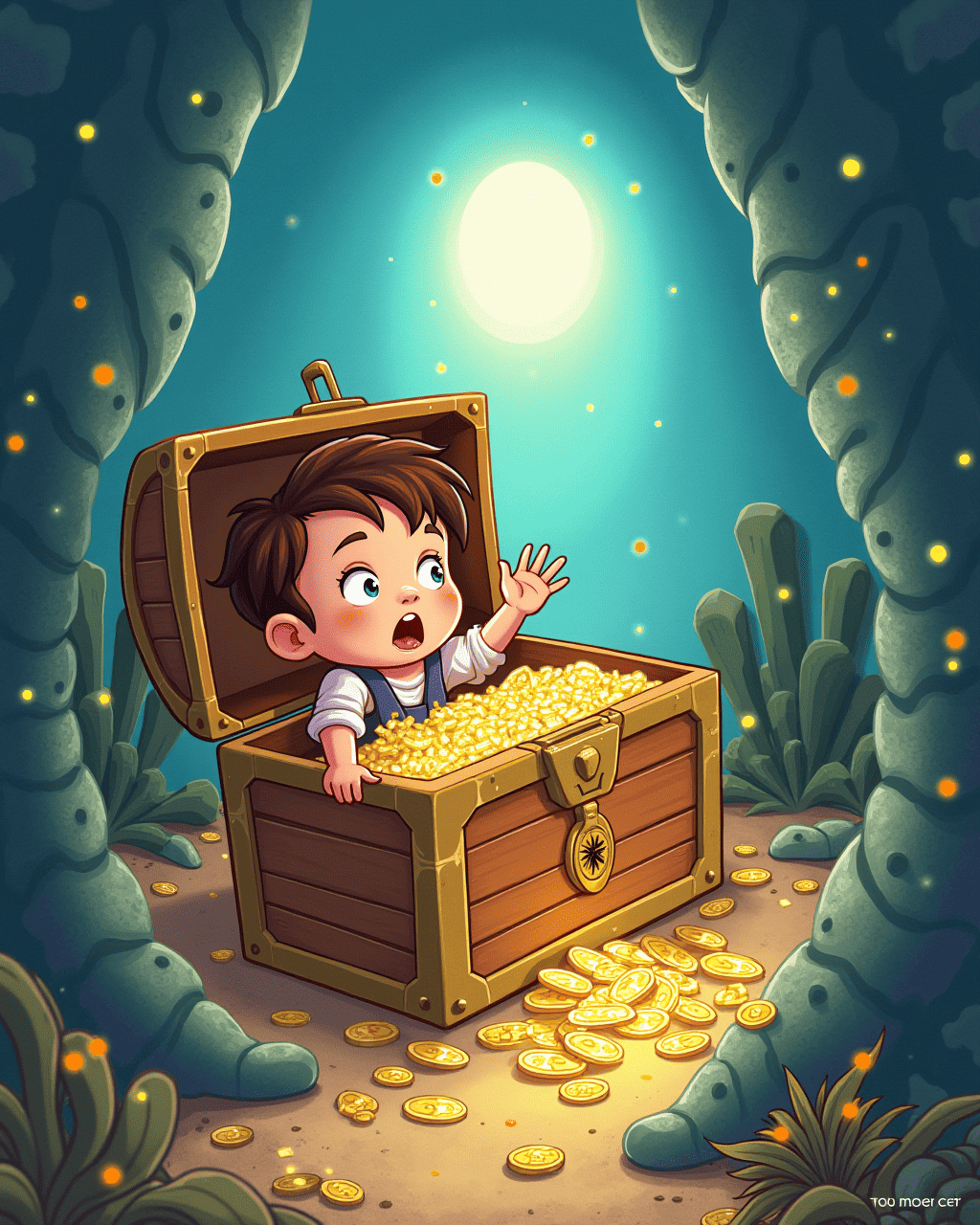 Sam pulled a loose plank that revealed a hidden compartment behind the chest. Inside, glittering gold coins and priceless jewels sparkled. Lily found a golden compass that glowed faintly, pointing to a distant direction. They heard a faint echo from beyond the chamber. Their excitement grew as they realized how treasure was truly hidden.