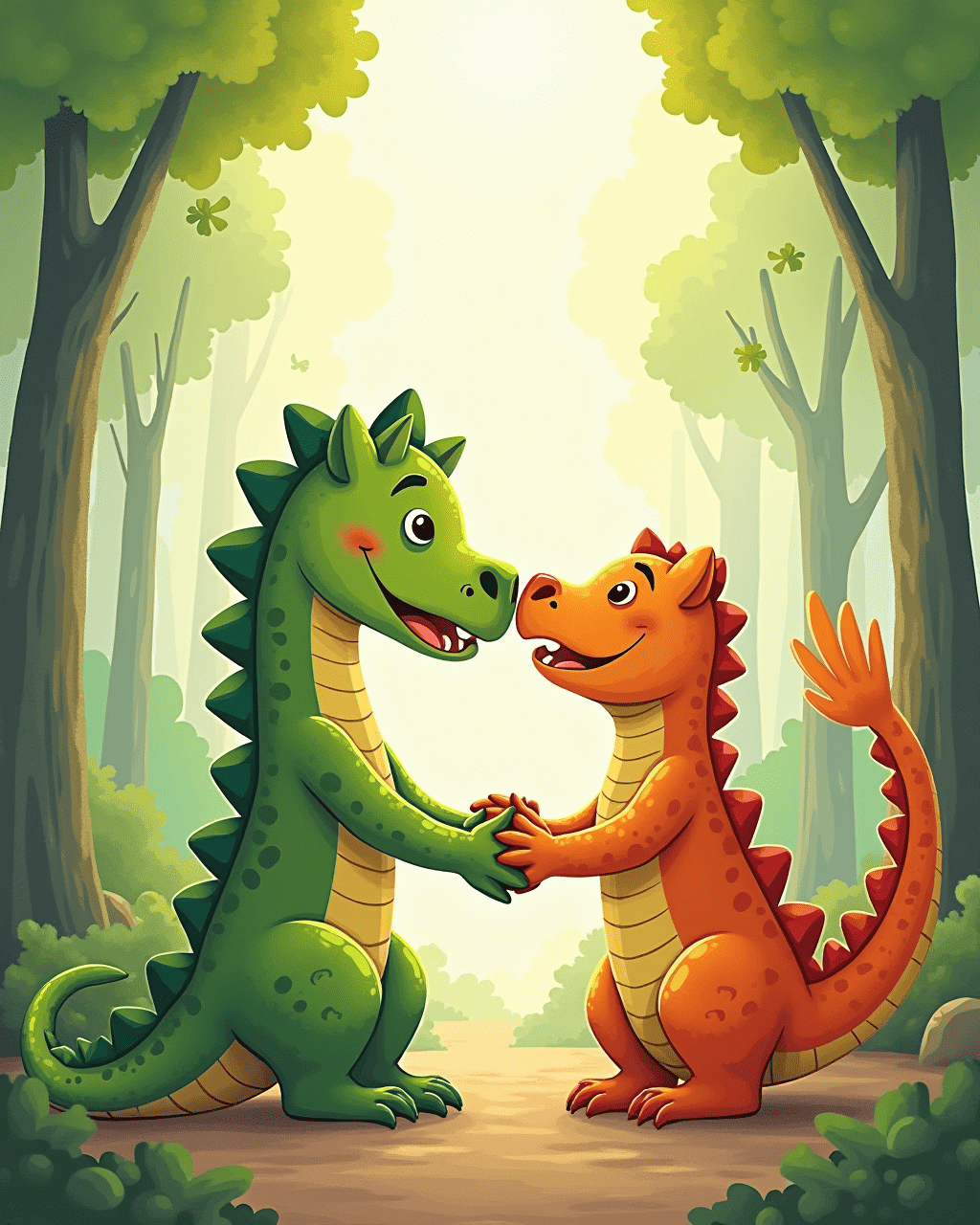 On Hug Day, Kiko, Milo, and all friends held hands, or arms, and smiles. The forest filled with gentle warmth. Kiko understood that he didn’t need to be alone; sharing hugs made everyone feel loved. From that day on, the jungle was known as the Hug Sanctuary. The Komodo dragon loved the feeling of belonging.
