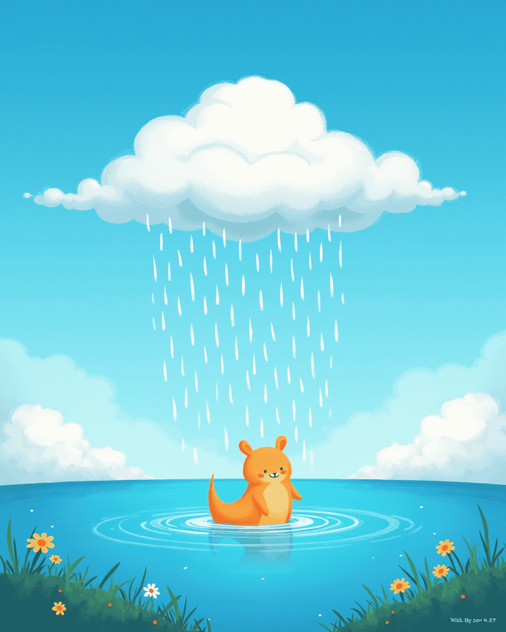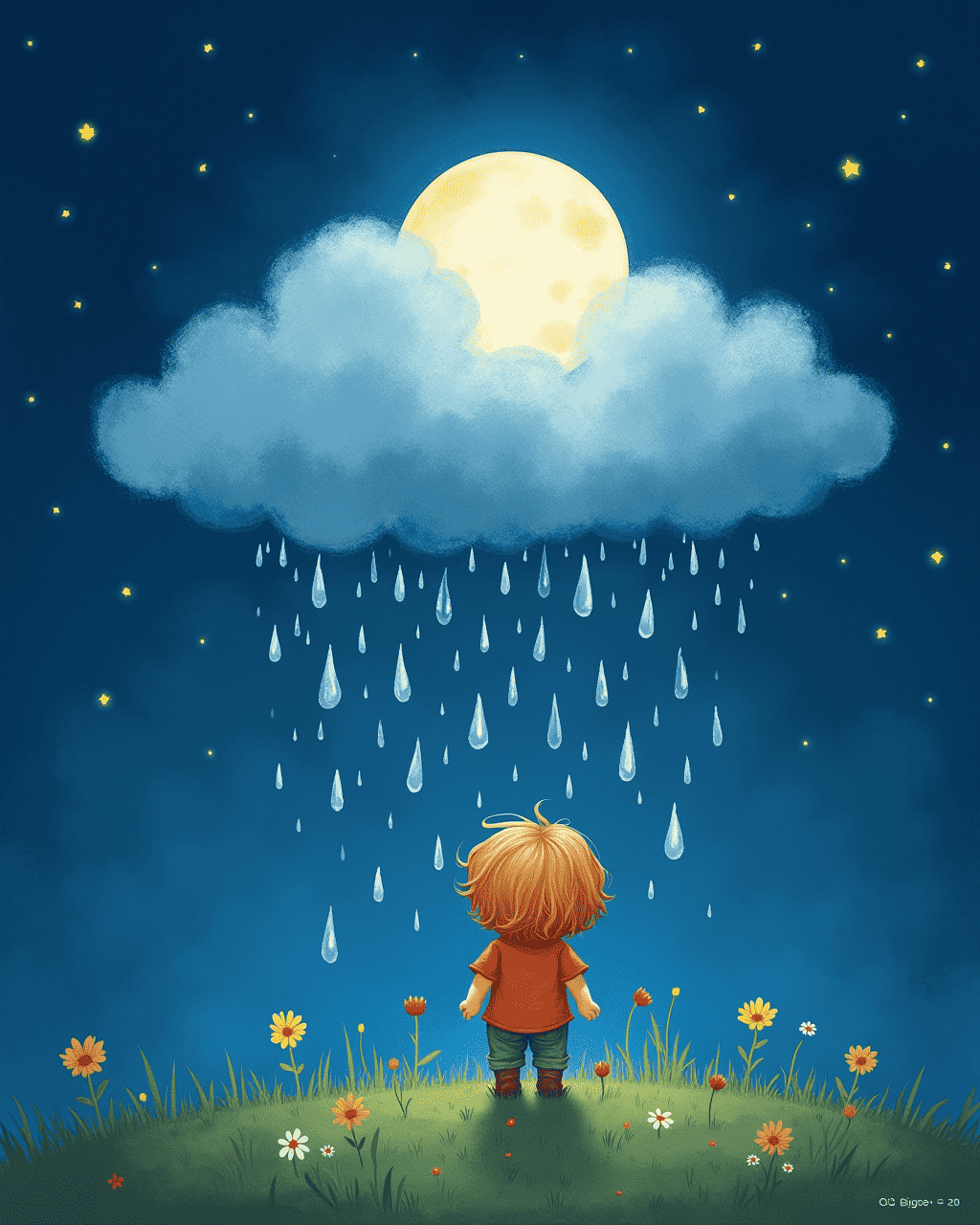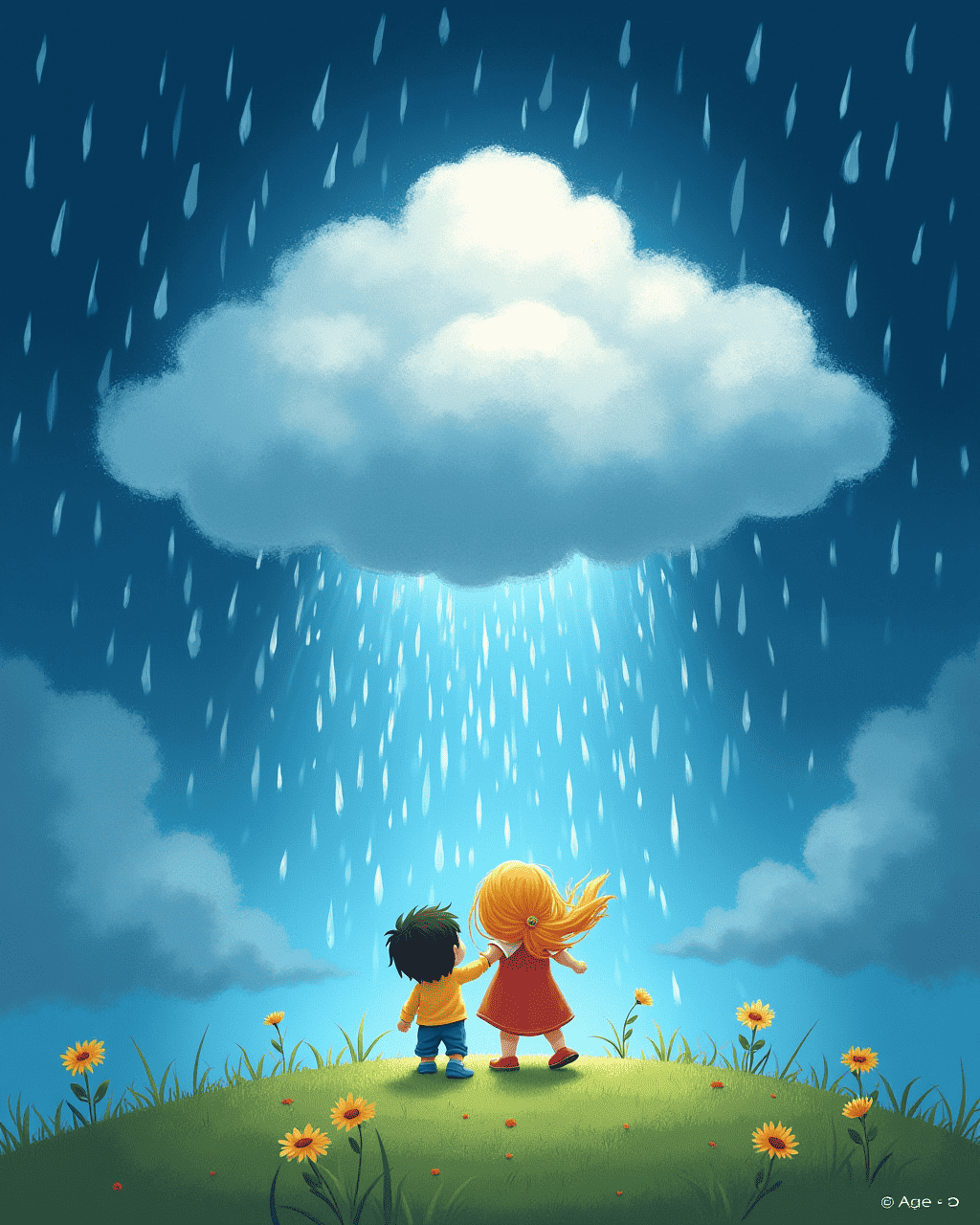 At dawn, the shy cloud carried a single drop. He let it fall into a thirsty field. The earth welcomed it with delight. The little cloud laughed happily. He felt his heart grow lighter.