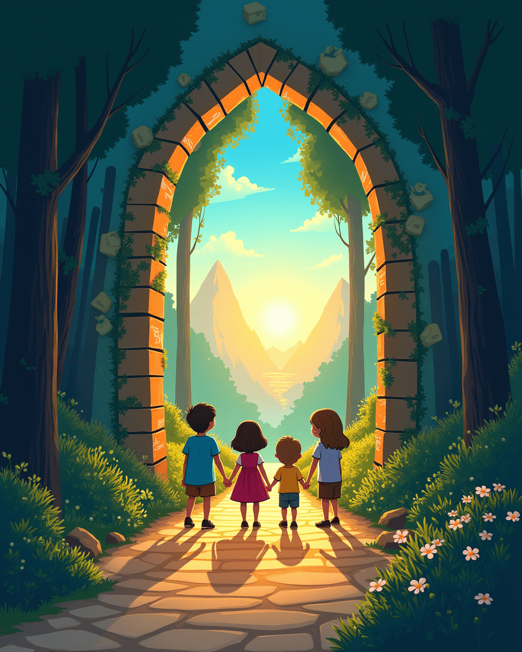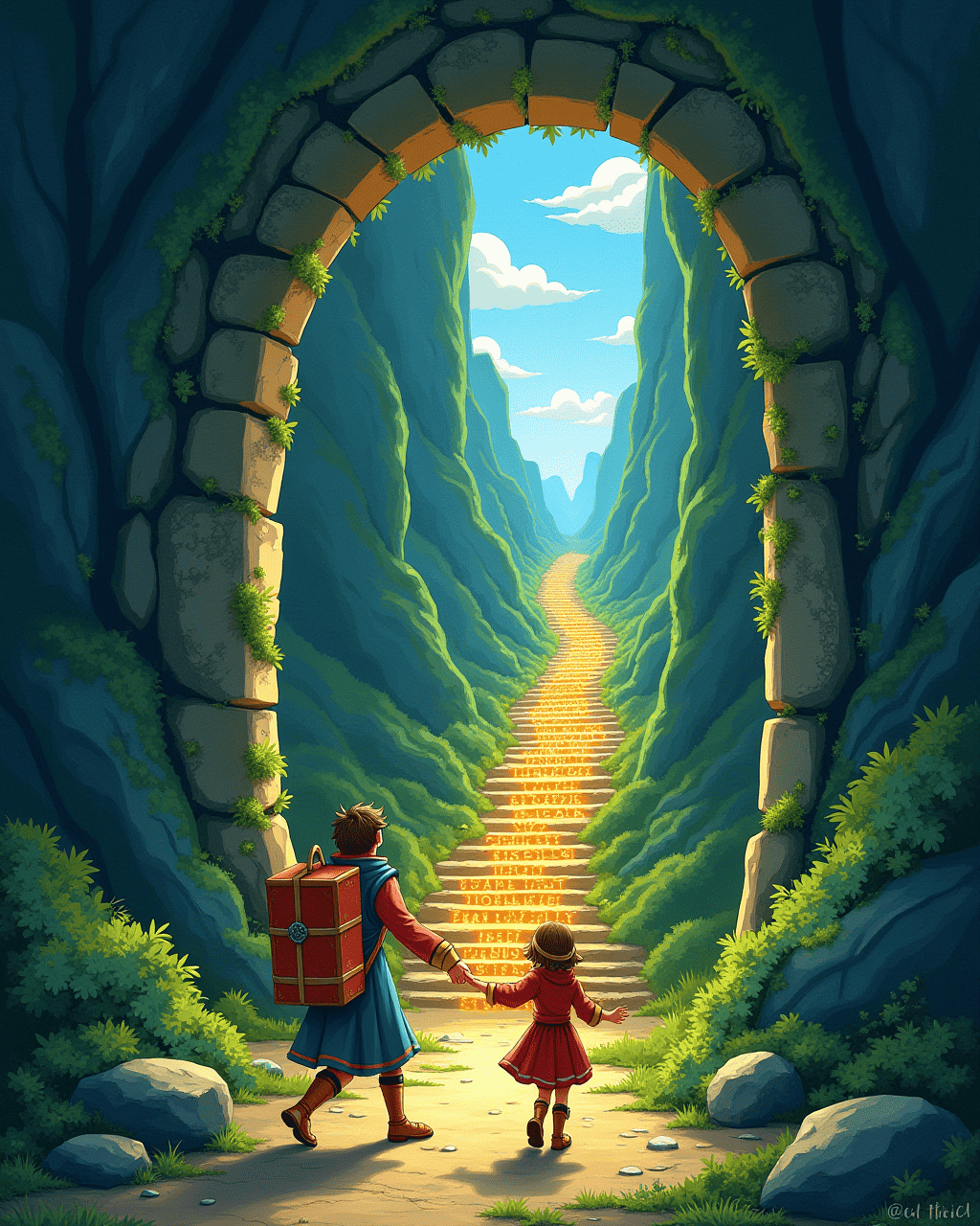 The arch opened slowly, revealing a staircase carved with glittering letters.