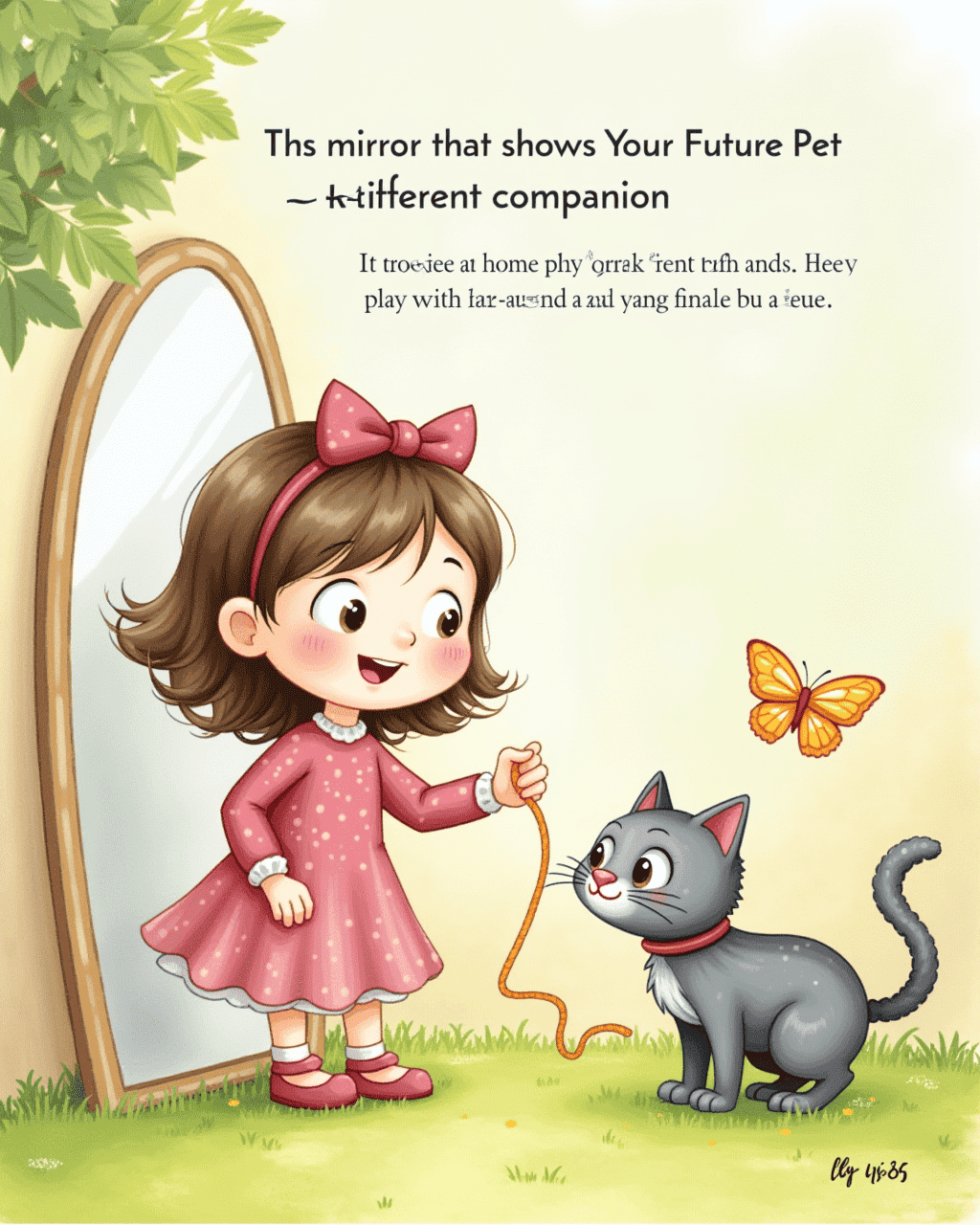 A curious girl named Lily discovers a magical silver mirror that shows her future pet.