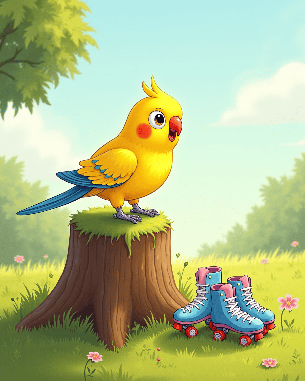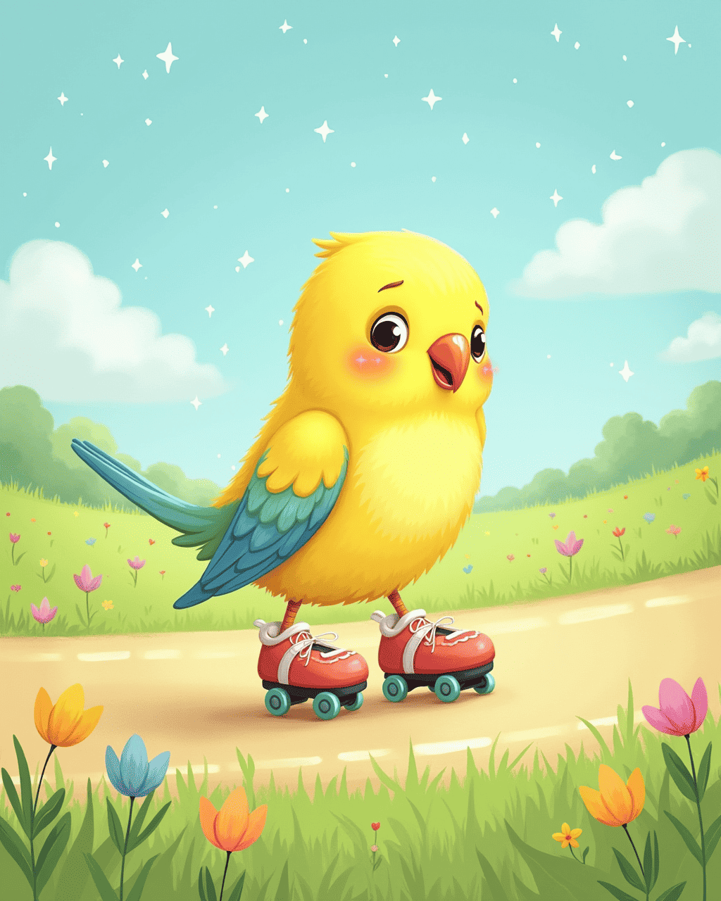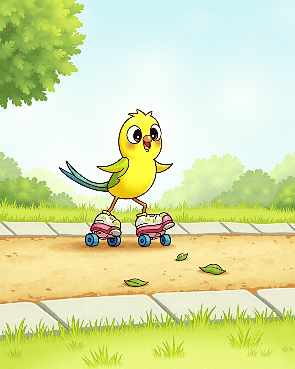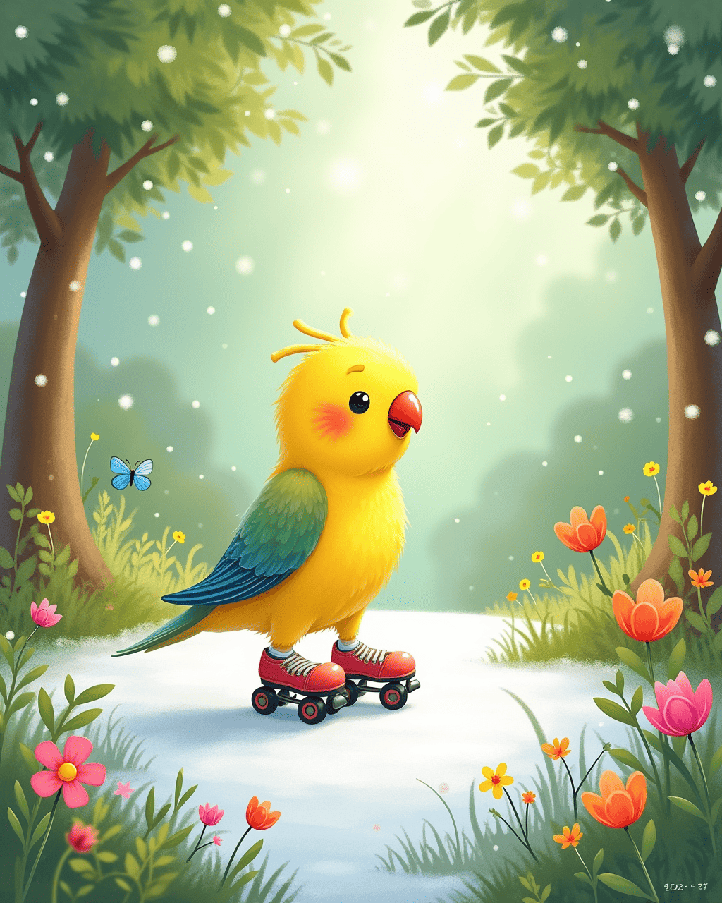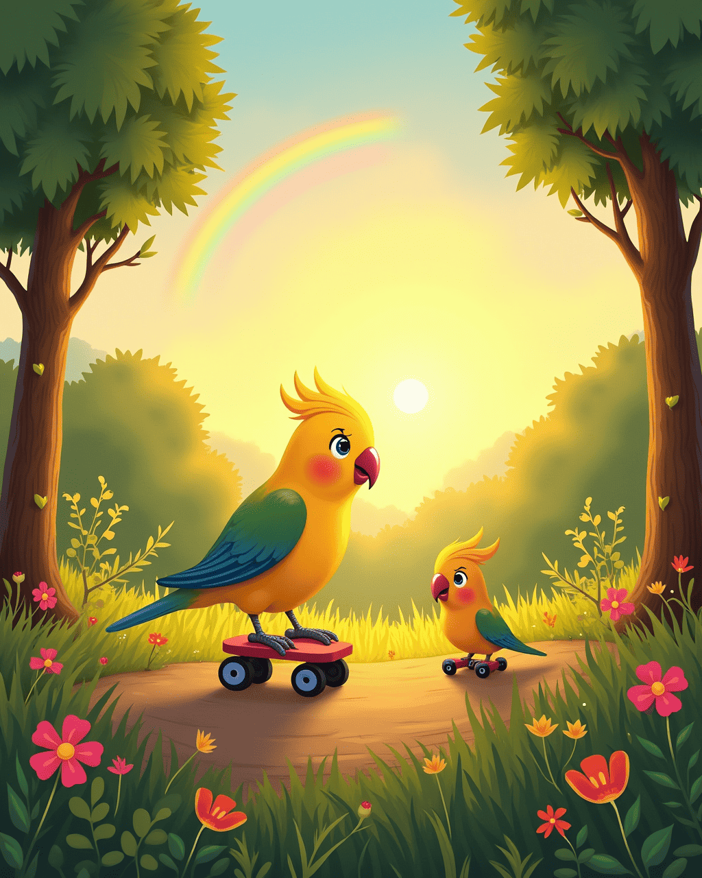 A bright-yellow parakeet named Penny discovered that skating was more amazing than flying. The wind whistled as she practiced her moves on the forest floor. Little ones giggled as Penny zipped past them. Her feathered friends cheered her on, making the day unforgettable. And every time her wings flapped, she felt a new spark of joy.