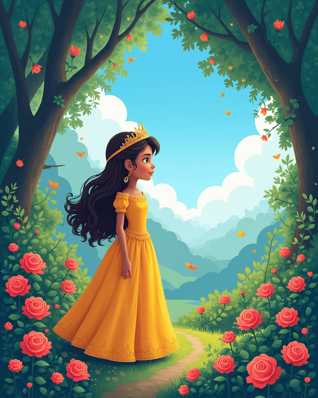 There once lived a young princess named Liora in a shining kingdom of sapphire skies. She loved to wander through the royal gardens, picking fragrant roses and listening to the birdsong. One bright morning, the king announced that a dazzling new crown would be forged for the next celebration. Liora felt a pang of curiosity, but also a quiet worry that a crown might change who she truly was.