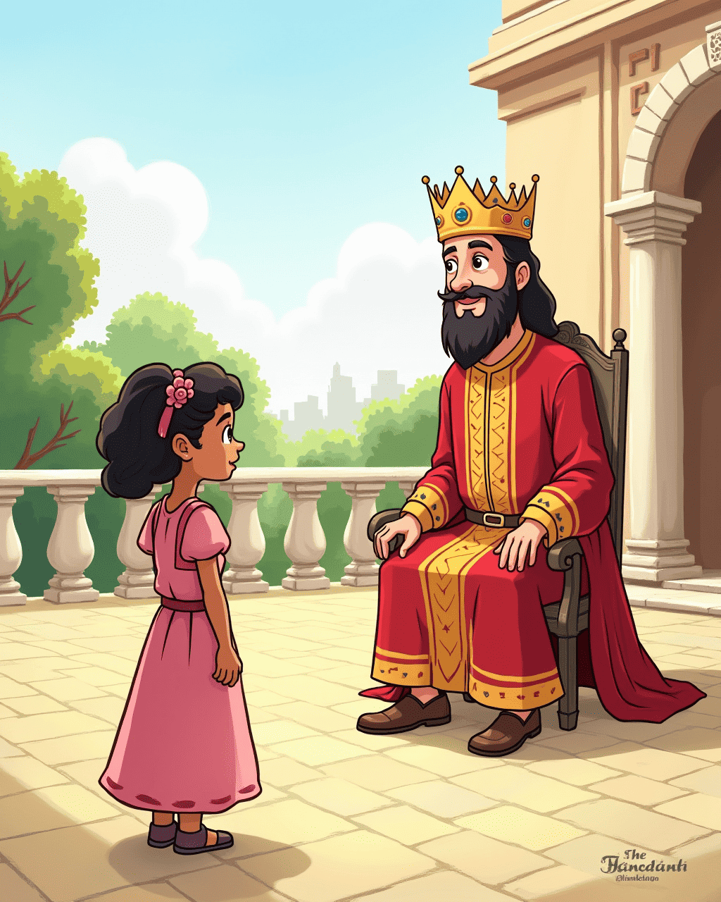 She found the king in his courtyard, where he was gazing over the marble halls. Liora spoke with honesty, telling the king that her heart wanted to help the people, not sit upon a throne. The king, wise and gentle, listened. He nodded, realizing she could serve the kingdom in a different way—through kindness and courage, not through wearing shiny jewels.