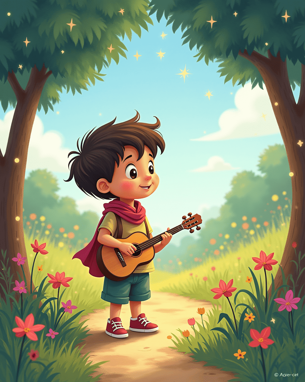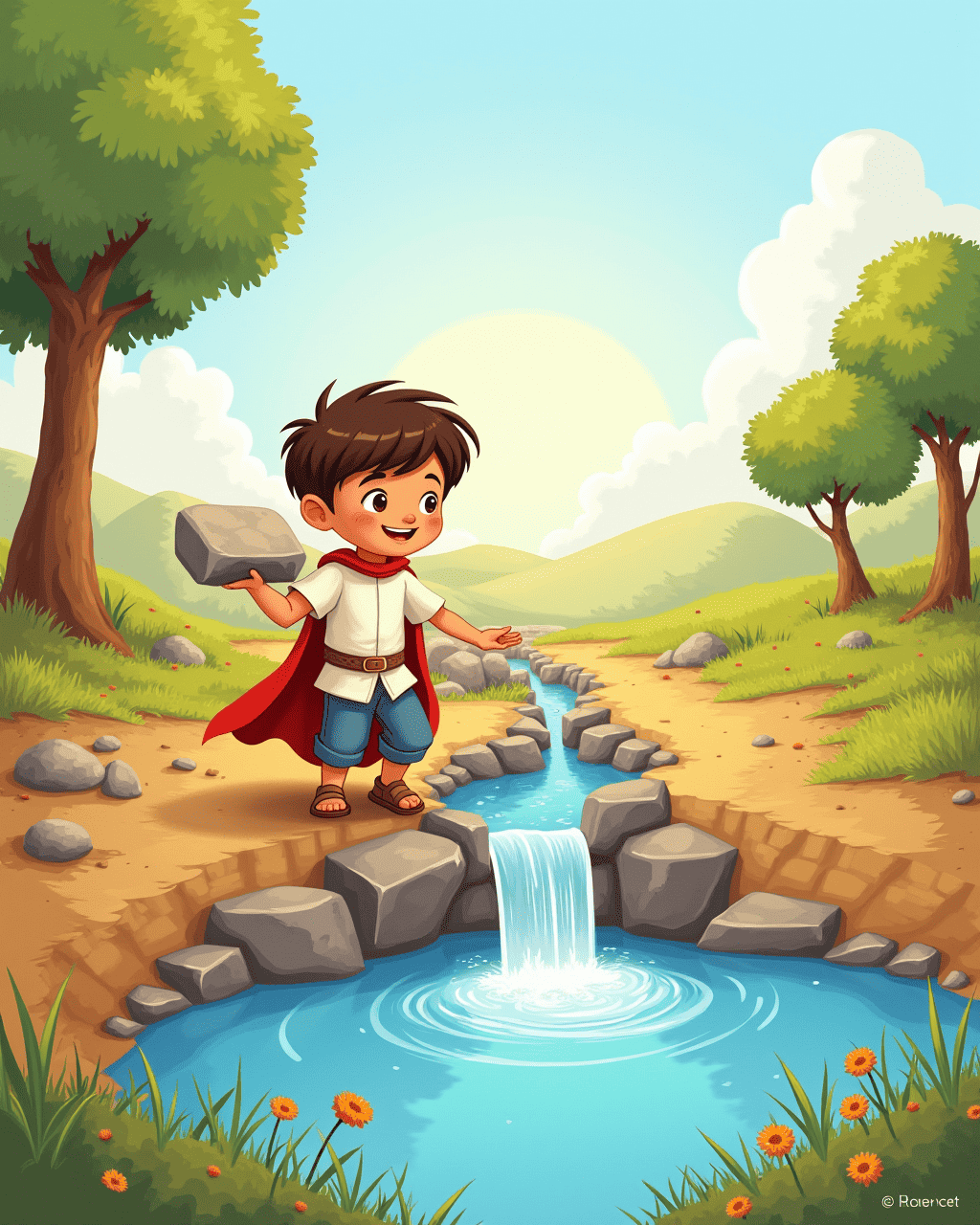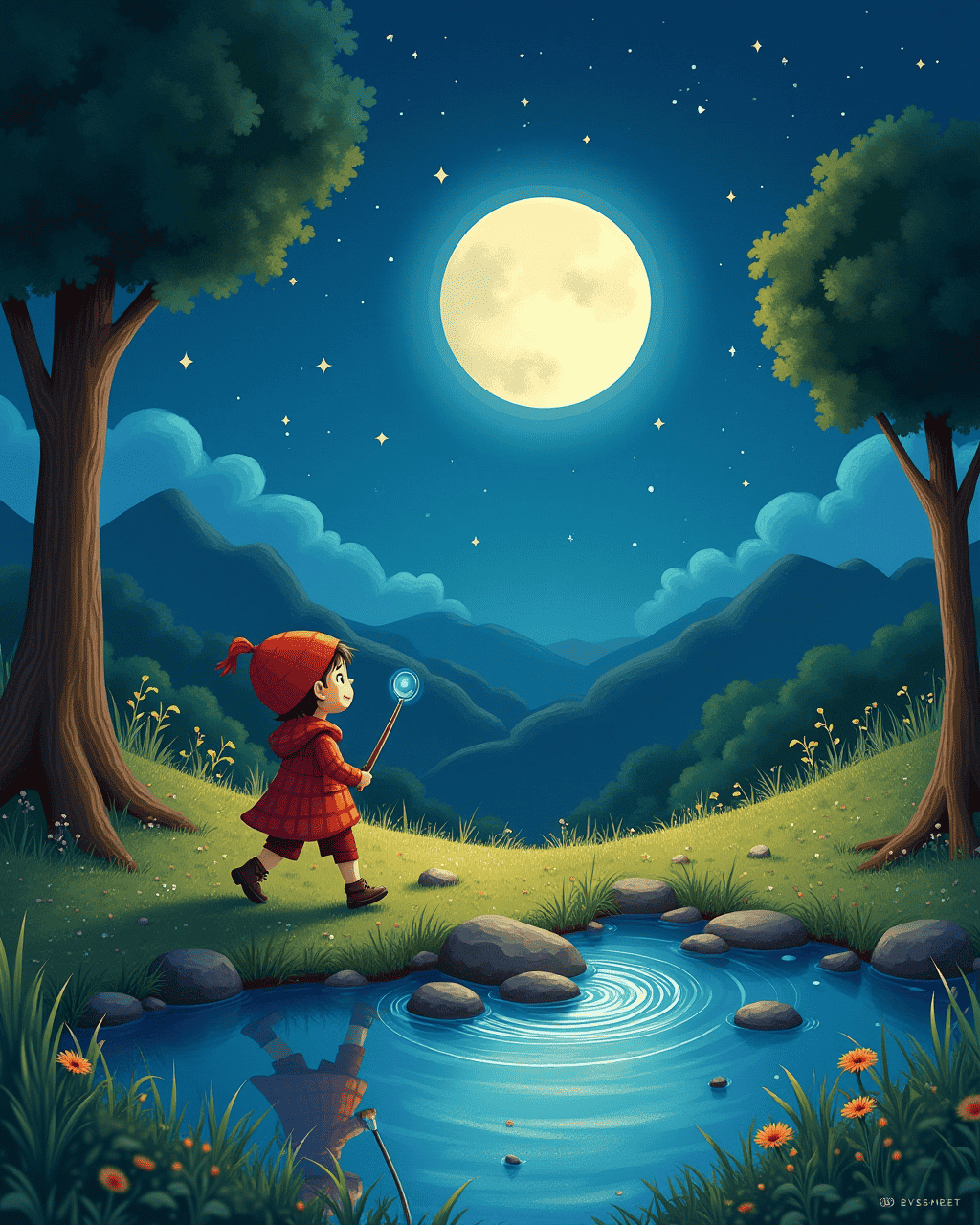 He gathered bright pebbles, twine, and a sturdy stick to guide his way.