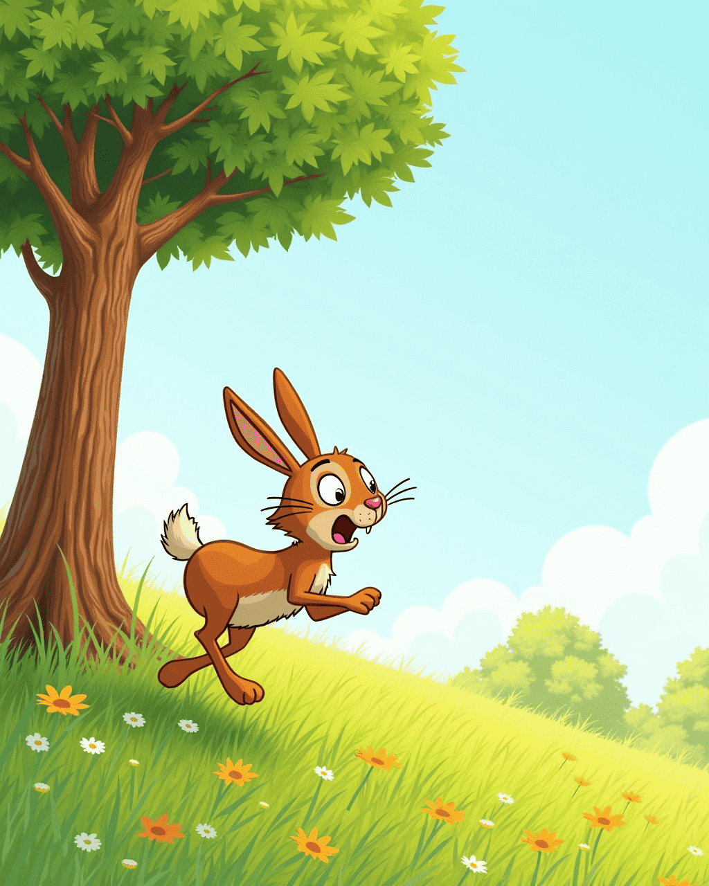 Benny hopped until he reached the big oak tree, where a gust of wind blew his ears down. The wind challenged him, saying, "If you want to catch me, you must be faster and smarter than me." Benny was startled but felt a spark of excitement. He listened carefully to the wind’s words, realizing it was not just a force of nature but a playful friend. He decided that even if he couldn't outrun the wind, he could still win by being clever.
