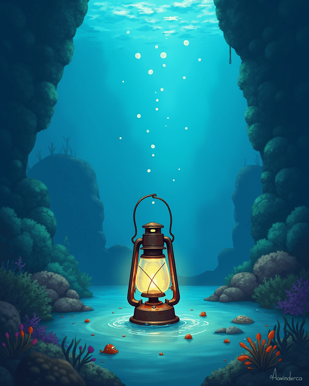 Far deeper, they discovered a rusted lantern floating on the bottom.