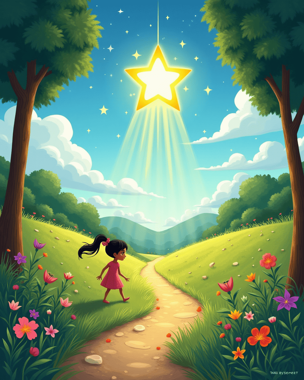At the top of the hill, a path of silver stars appeared. Each star glowed brighter the closer she walked. The stars showed her a series of patterns that made shapes of animals and flowers. Maya felt her heart warm with curiosity. She realized the sky had been stitched to teach the village new stories.