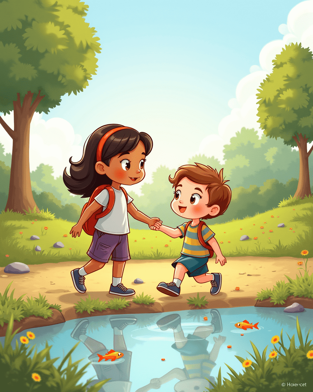 One sunny morning, a shy boy named Leo asked Kiki if he could borrow her shoes for a treasure hunt. Kiki hesitated, but the shoes glowed reassuringly. She slid her feet into the pair, feeling the cool comfort. With the shoes, Kiki and Leo explored the town’s forgotten creek, discovering glittering stones and friendly fish. The shoes remembered Leo’s smile, cementing a new friendship.