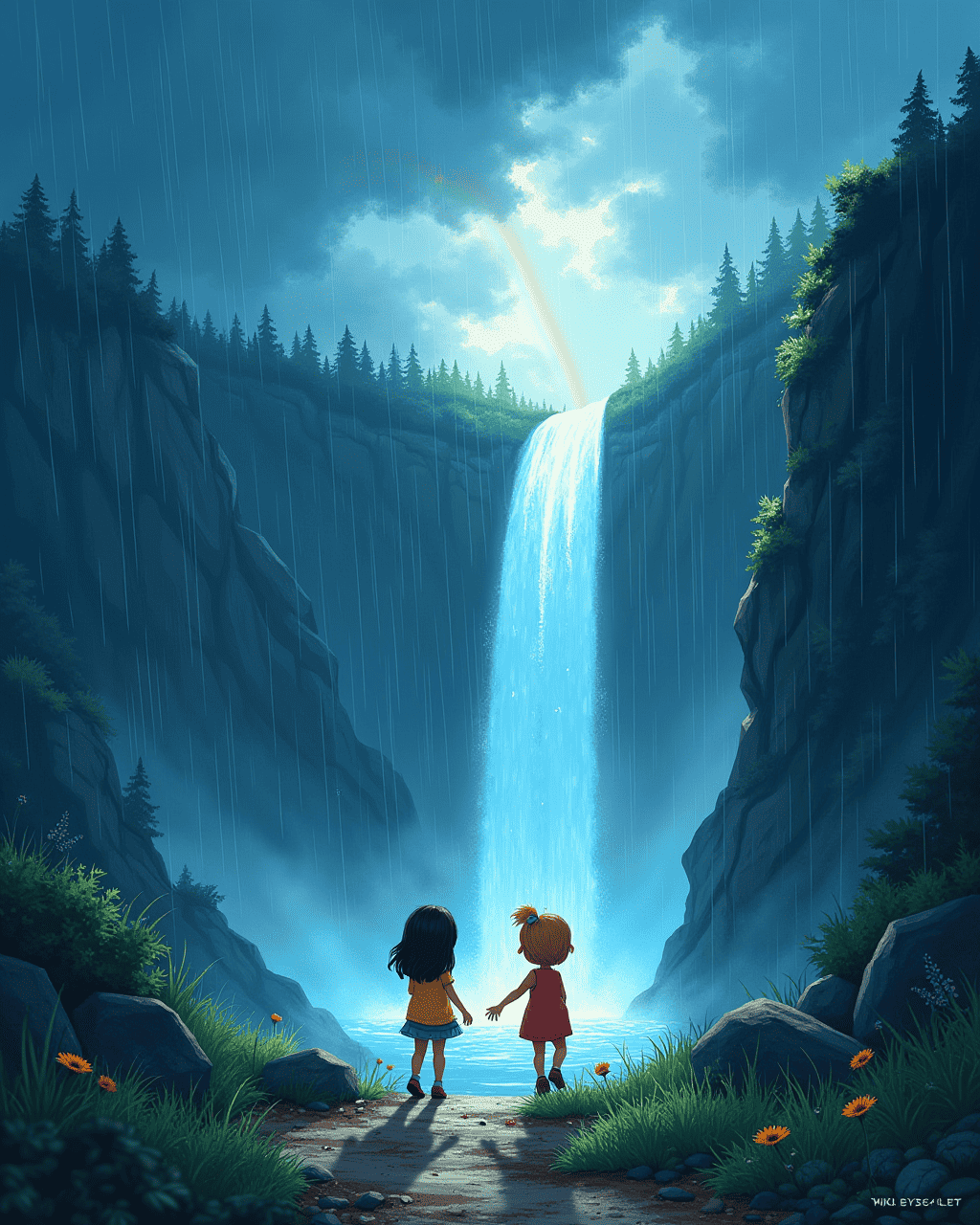 Kiki and Leo climbed a steep, misty trail that led to a hidden waterfall. The shoes helped them balance on slick rocks and whispered the names of each winding path. When a sudden rainstorm rolled in, the shoes turned bright blue and lifted them out of the rain. The pair stood beneath the cascading water, marveling at the rainbow that arched over the falls. Kiki felt the shoes’ memories pulse with excitement.