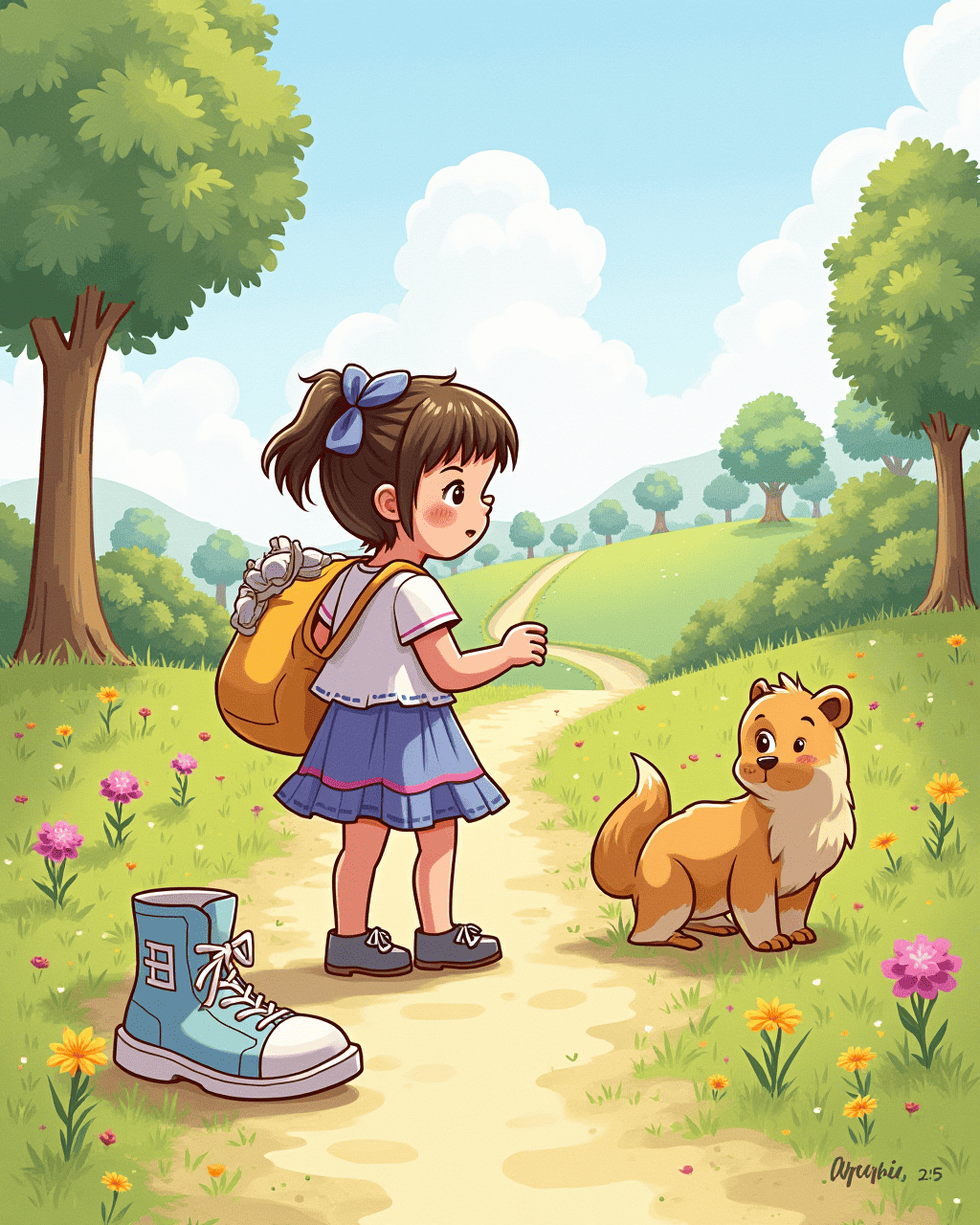 At dawn, the pair met a wily squirrel named Sammy. Sammy was known for stealing nuts and jokes alike. He challenged the shoes to a riddle contest: if Lily could solve his riddles, she would let them keep a secret snack. The shoes answered, "I speak without a mouth and hear without ears. Who am I?" Sammy nodded, impressed. The next riddle was, "I can fly without wings. I cry without eyes. What am I?" Lily laughed, and the shoes shouted, "A cloud!" The squirrel was amazed and promised to share his secret stash with the shoes.
