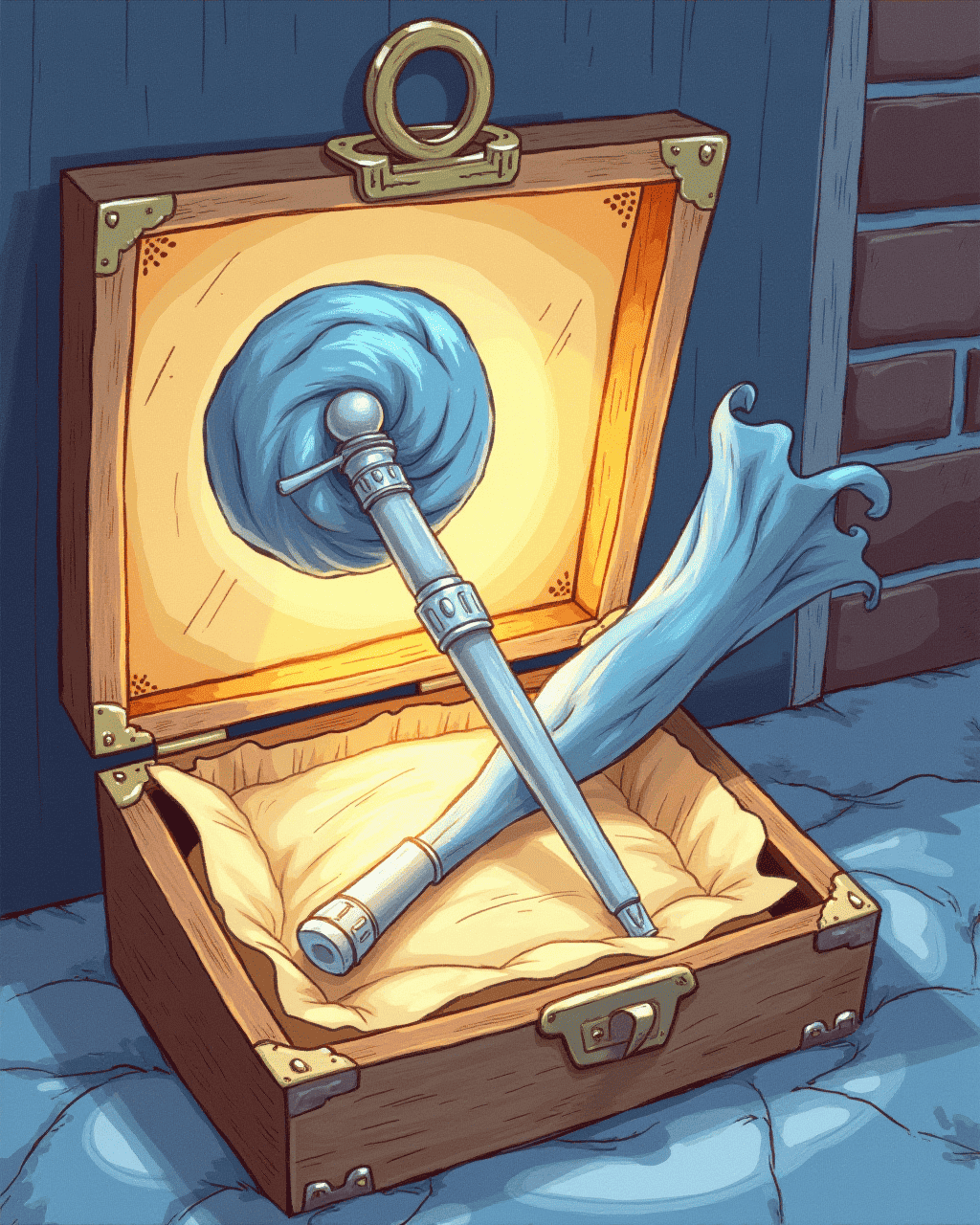 Inside, a silver wand lay wrapped in faded blue cloth.