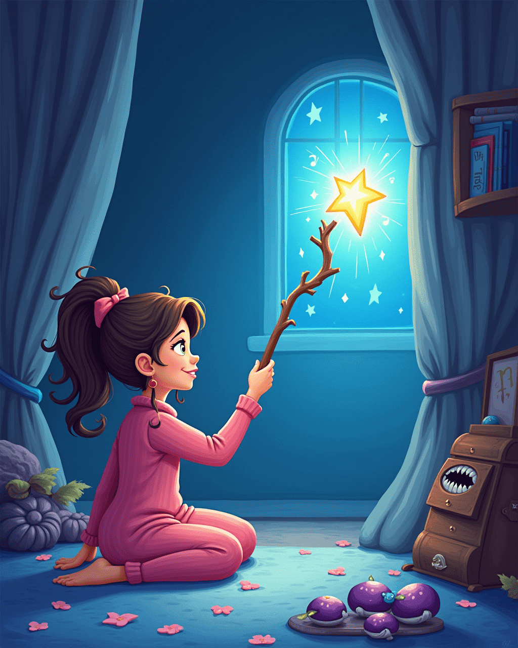 She waved the wand over her pillow, and images swirled into the night.