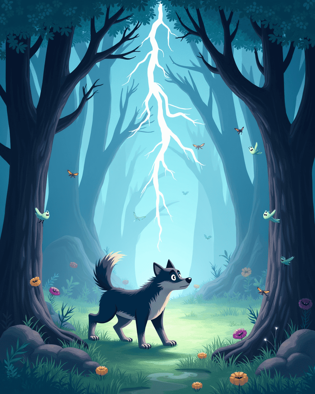 Lightened clouds drifted, the wolf bowed, and the forest settled into soft moss.