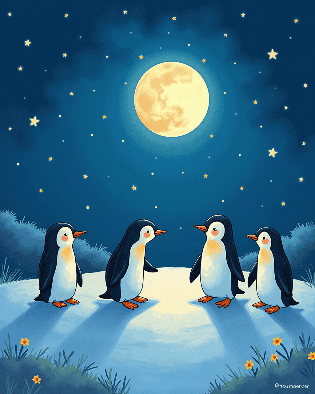 Spot meets a group of friendly lunar penguins. The pegs can float on moon dust. They greet Spot with dancing. Spot shares sunshine and laughter. Spot learns how to bounce without gravity.