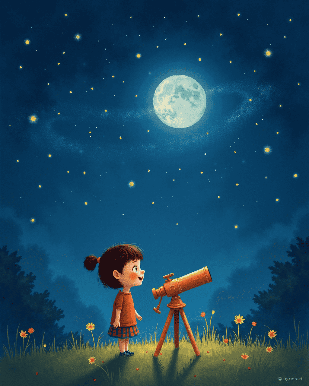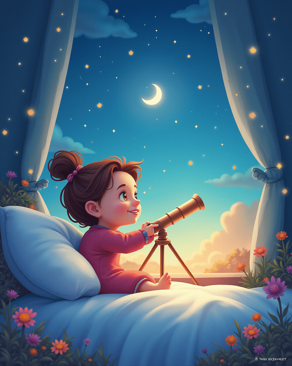 At last, Lucy placed her tiny telescope beside her bed, and the stars whispered stories of adventure. With curiosity as her compass, she vowed to always explore the sky’s mysteries. She dreamed of traveling to distant galaxies, and promised to share her discoveries with her friends. The tiny telescope became her best companion, reminding her that even the smallest thing can hold the greatest wonders.