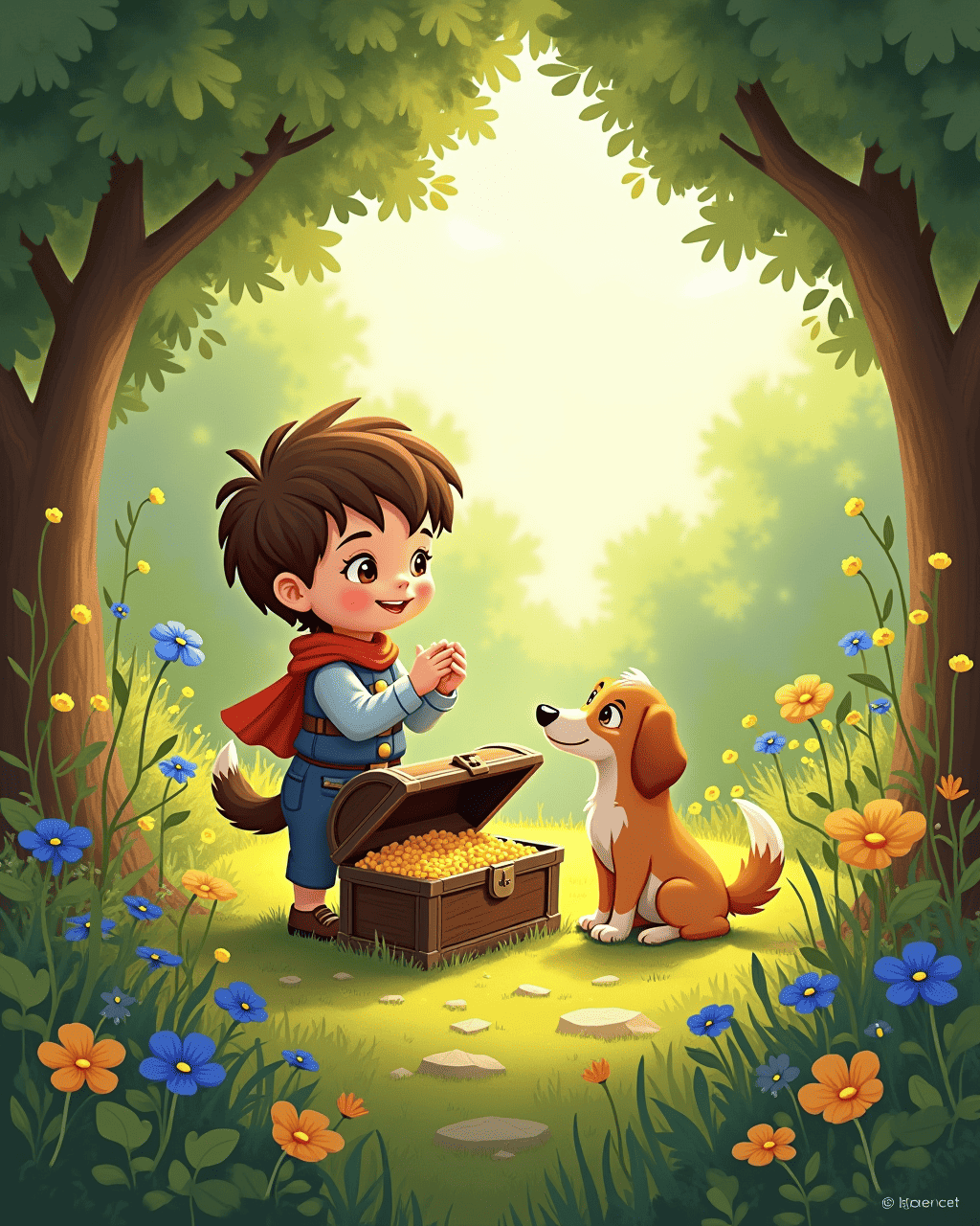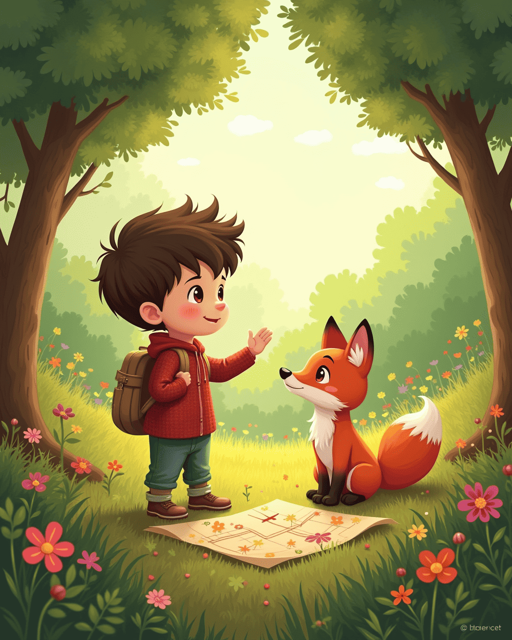 His best friend, Luna the fox, scampered beside him, curious about this hidden place.