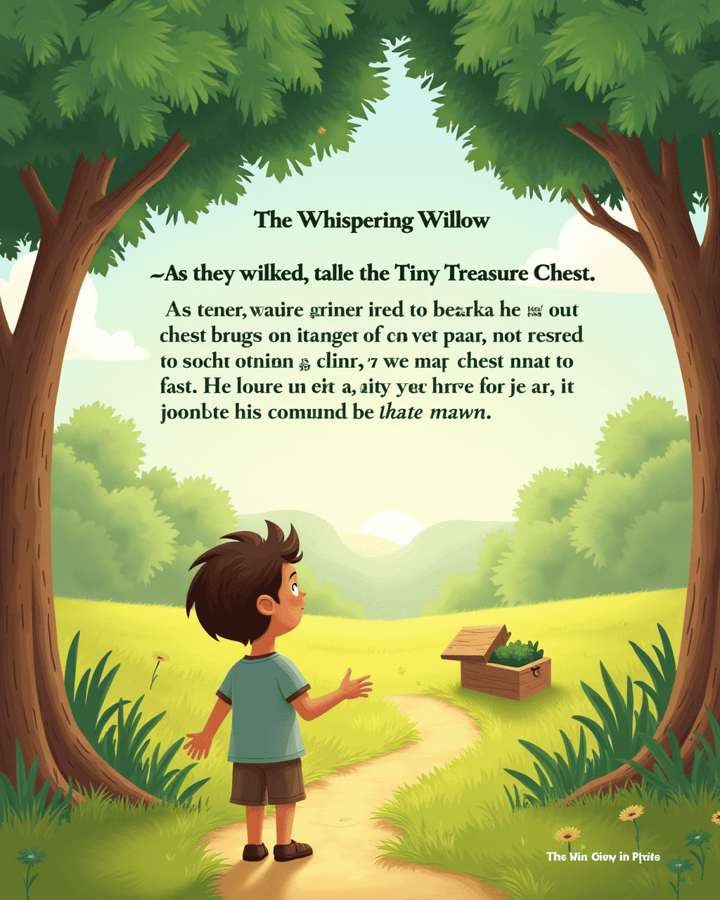 As they walked, a towering willow whispered to them, its leaves dancing in the breeze.