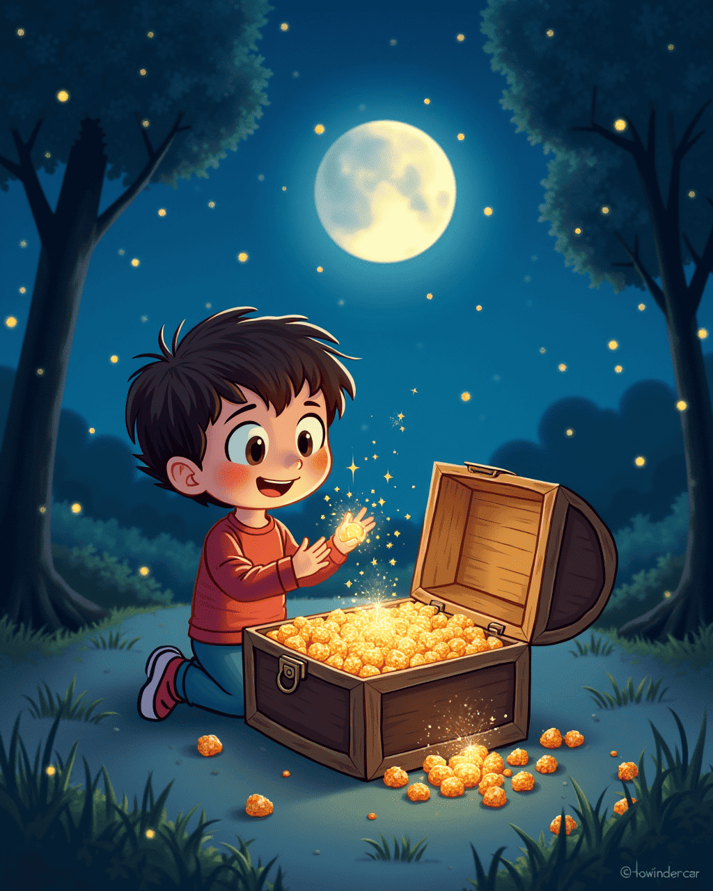 He promised Luna to share this treasure with all in the village.